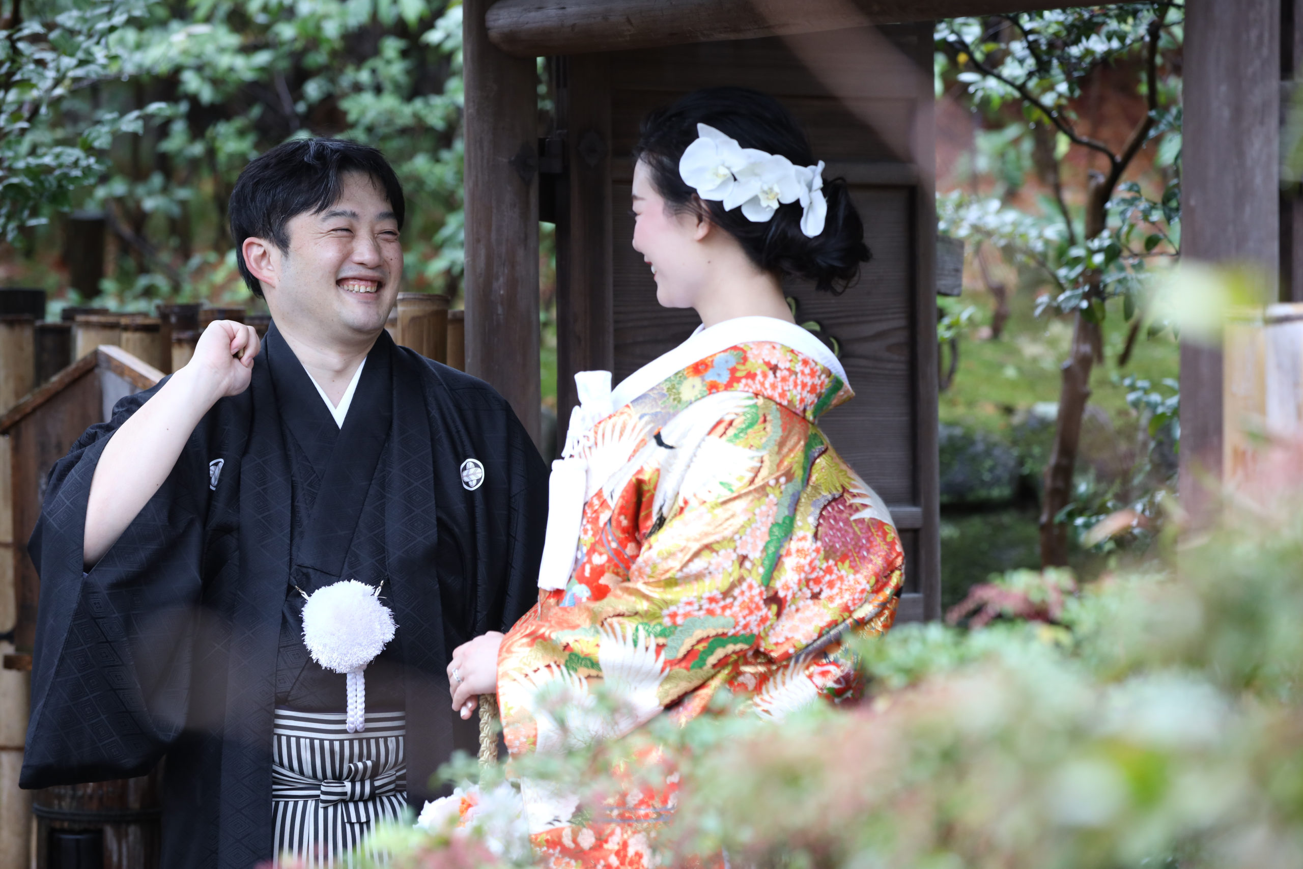 冬の白鳥庭園での幻想的な撮影をお楽しみいただきました!お二人とスタッフで息を合わせて撮影させて頂きました