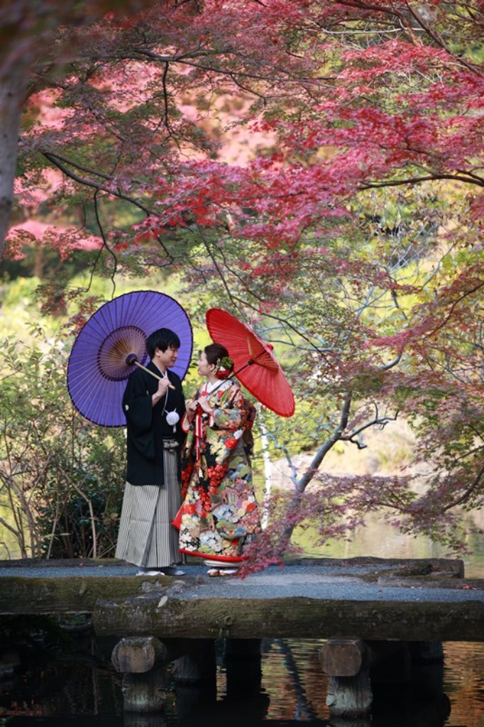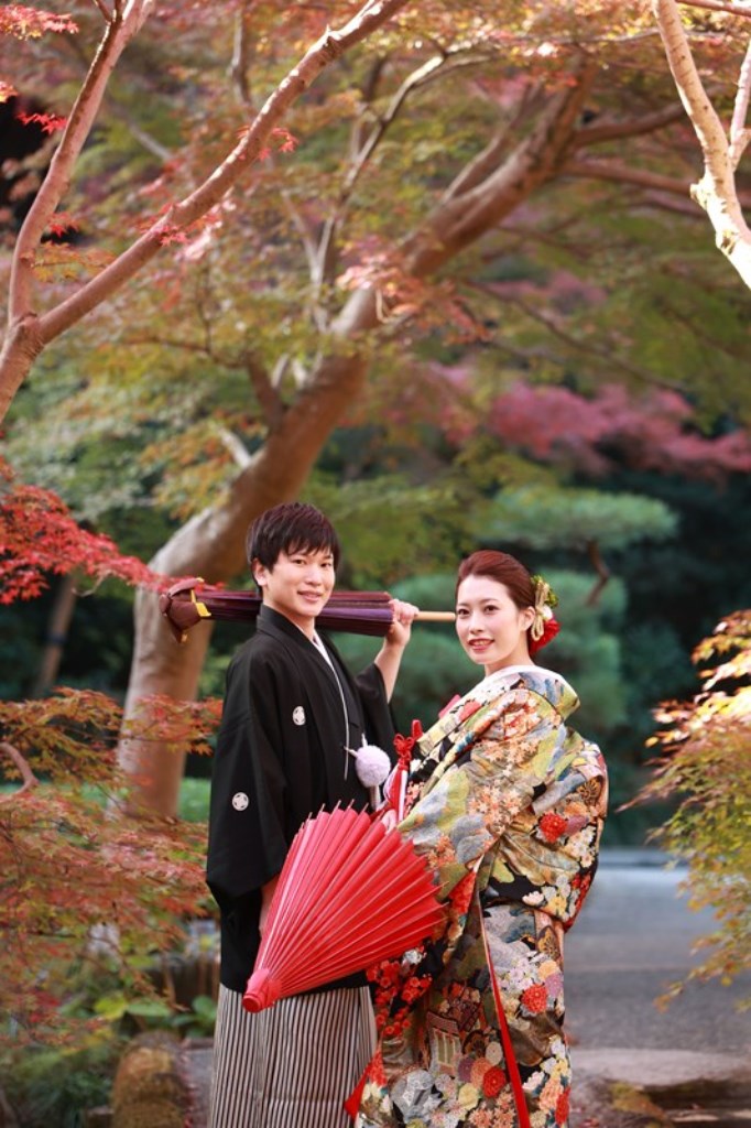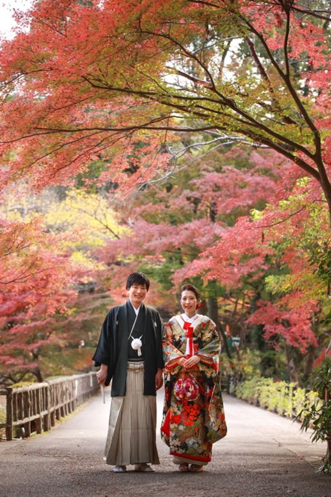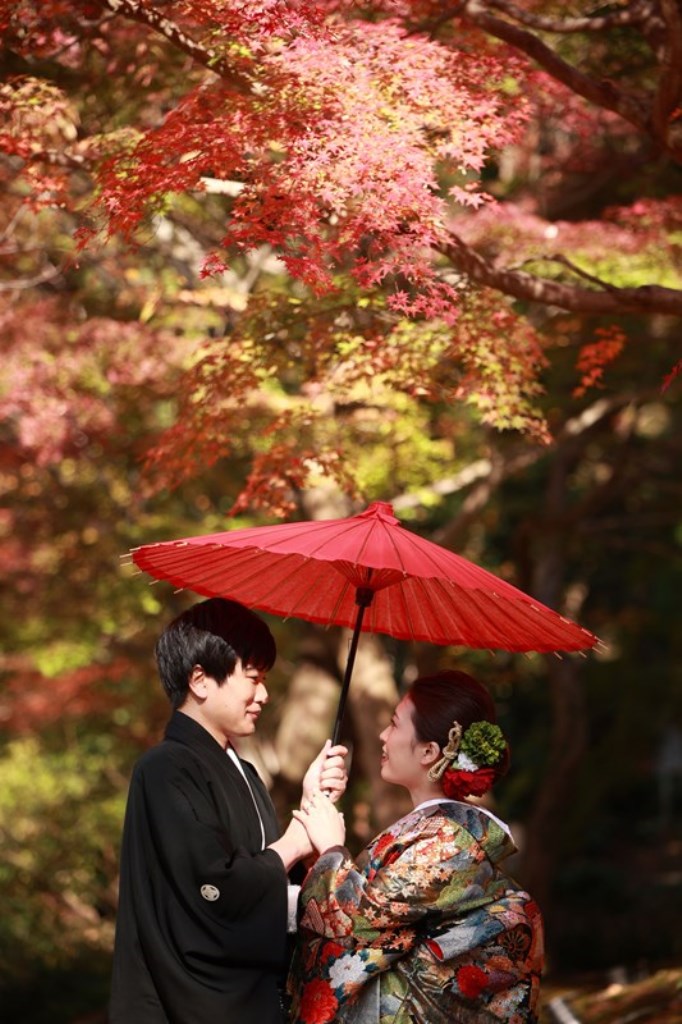 また和装撮影も紅葉が綺麗に色づいた最高のタイミングで