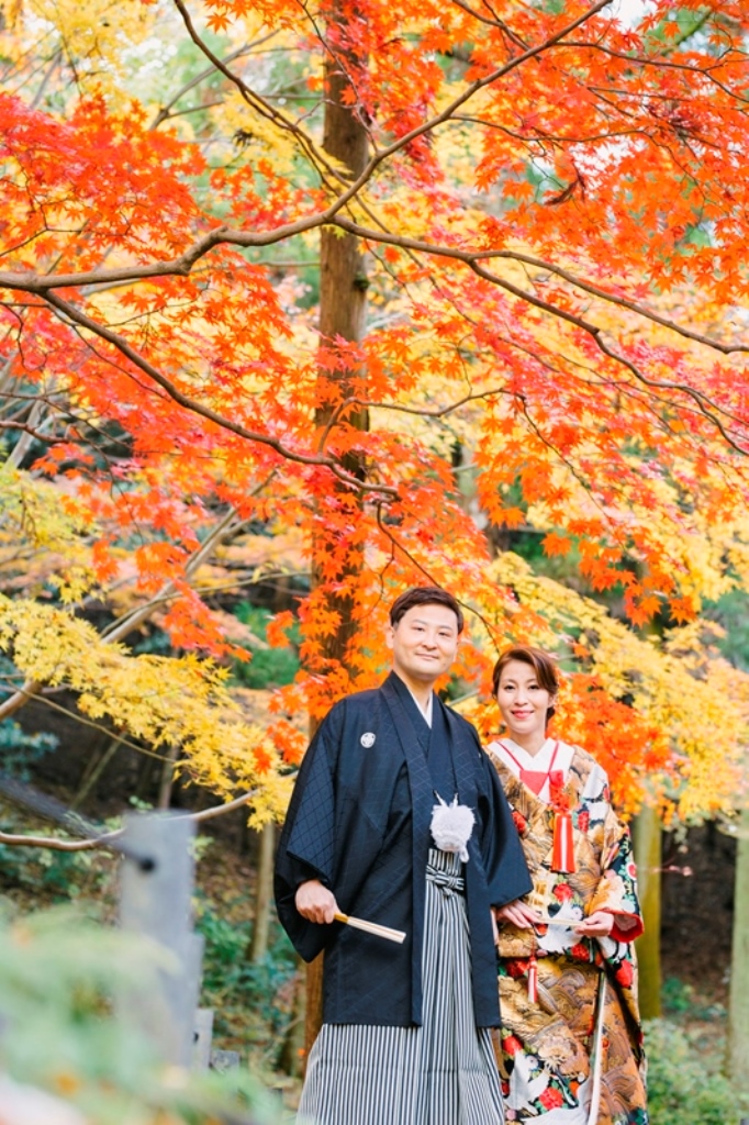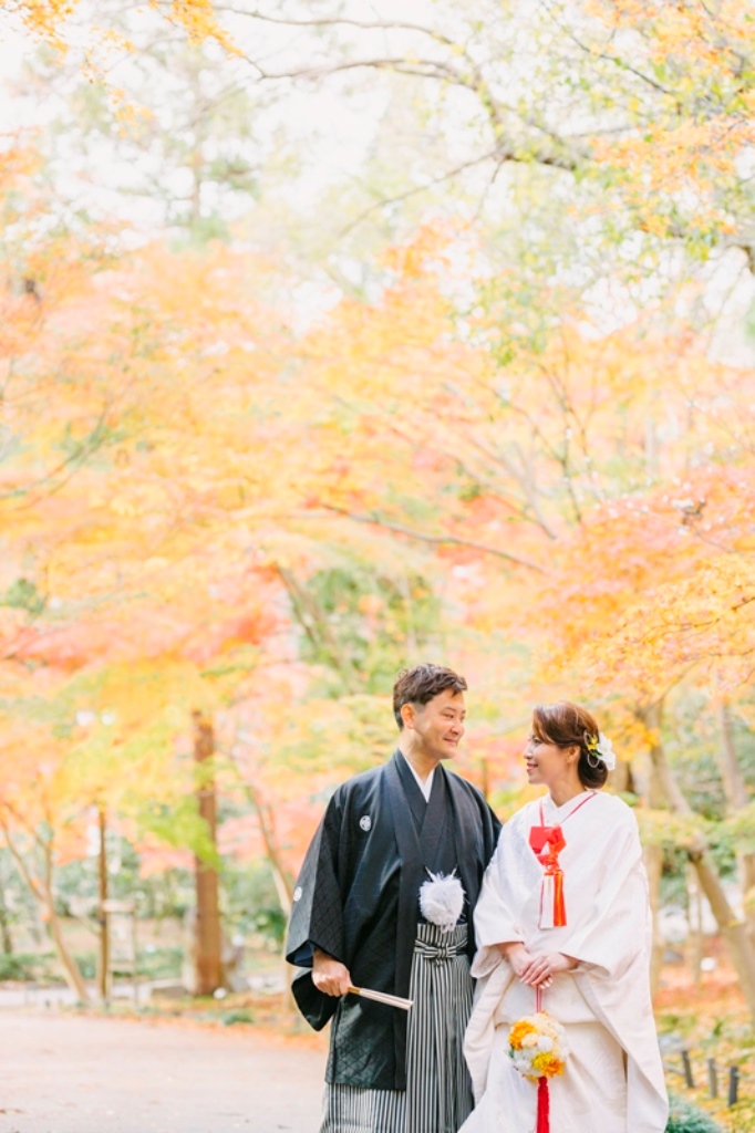 親御さんにも見て頂けてお二人だけでなくご家族にも最高の想い出になったのではと思います♪和装は紅葉が素敵な宗節庵での撮影でしたが、白無垢も色打掛も撮影頂き