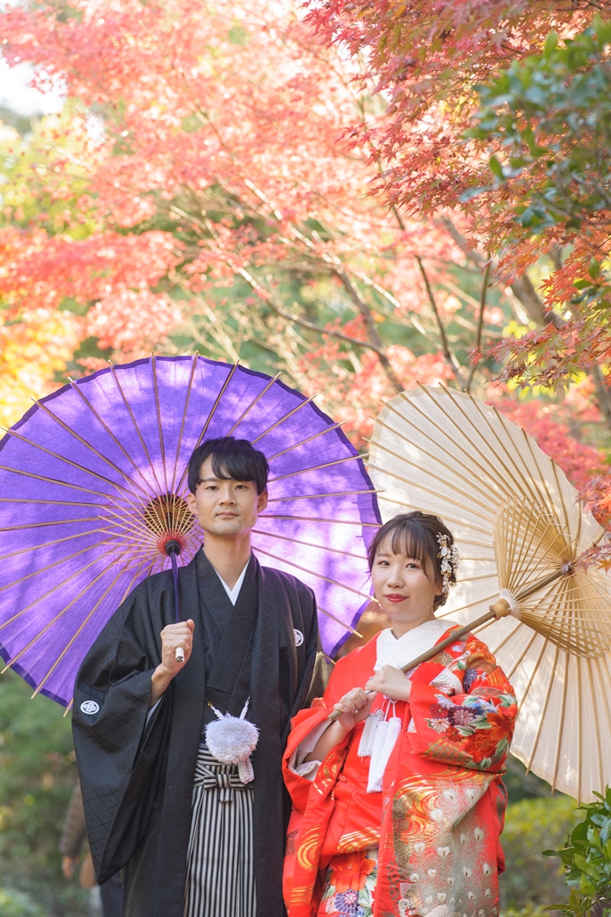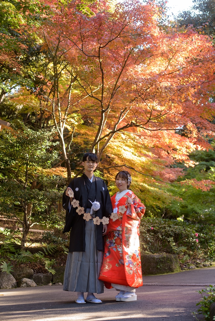 屋外(和装)では紅葉での撮影でしたが、お天気にも恵まれ、沢山素敵な写真を撮って頂けました。