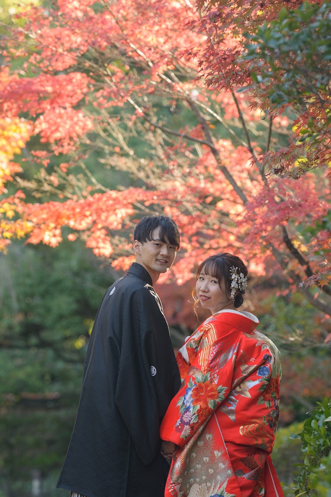 撮影中も終始楽しそうにしているお二人を見て、沢山癒されました~♪紅葉も綺麗に咲いていて、お二人のご希望の紅葉と一緒に撮影ができ、良かったです♡