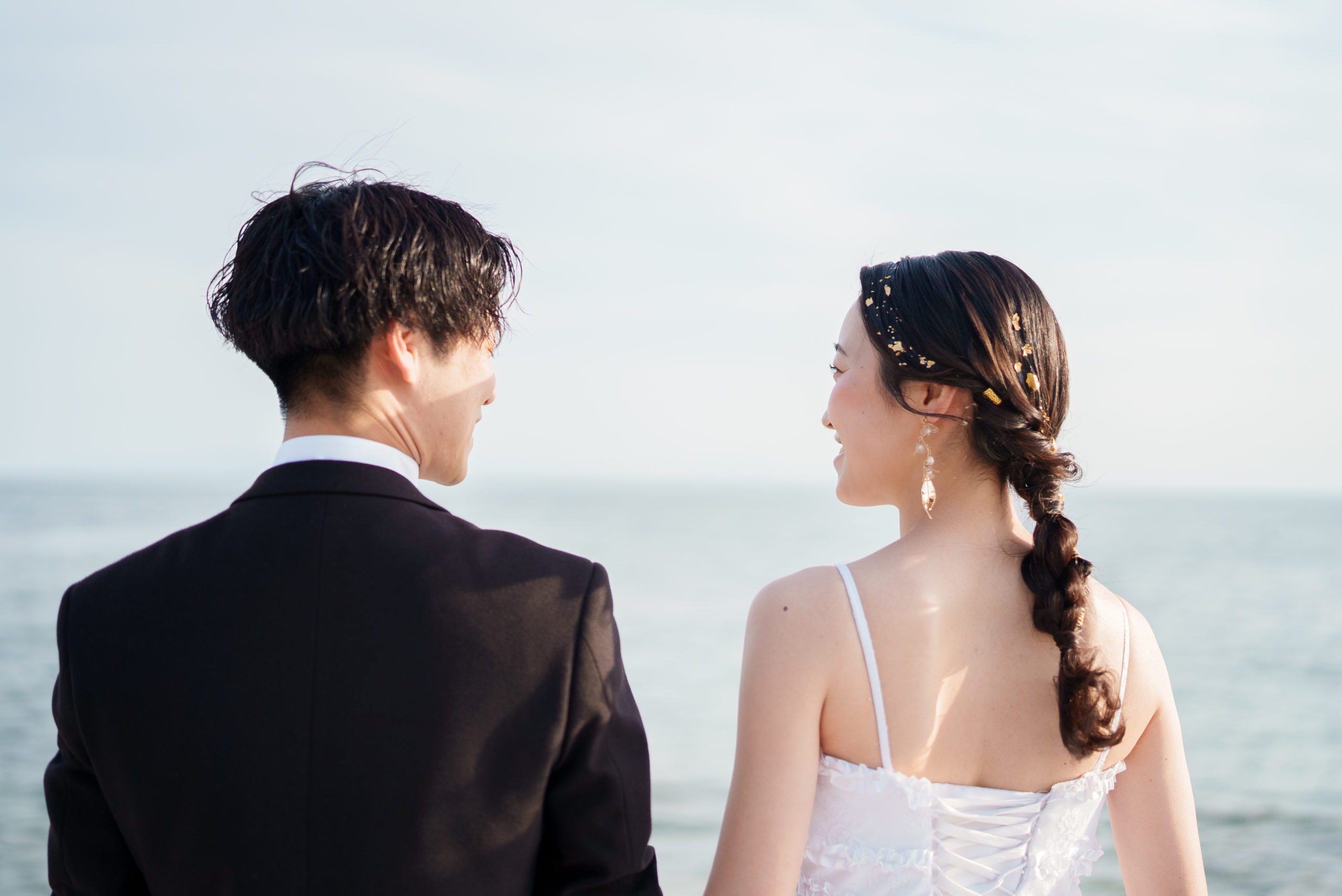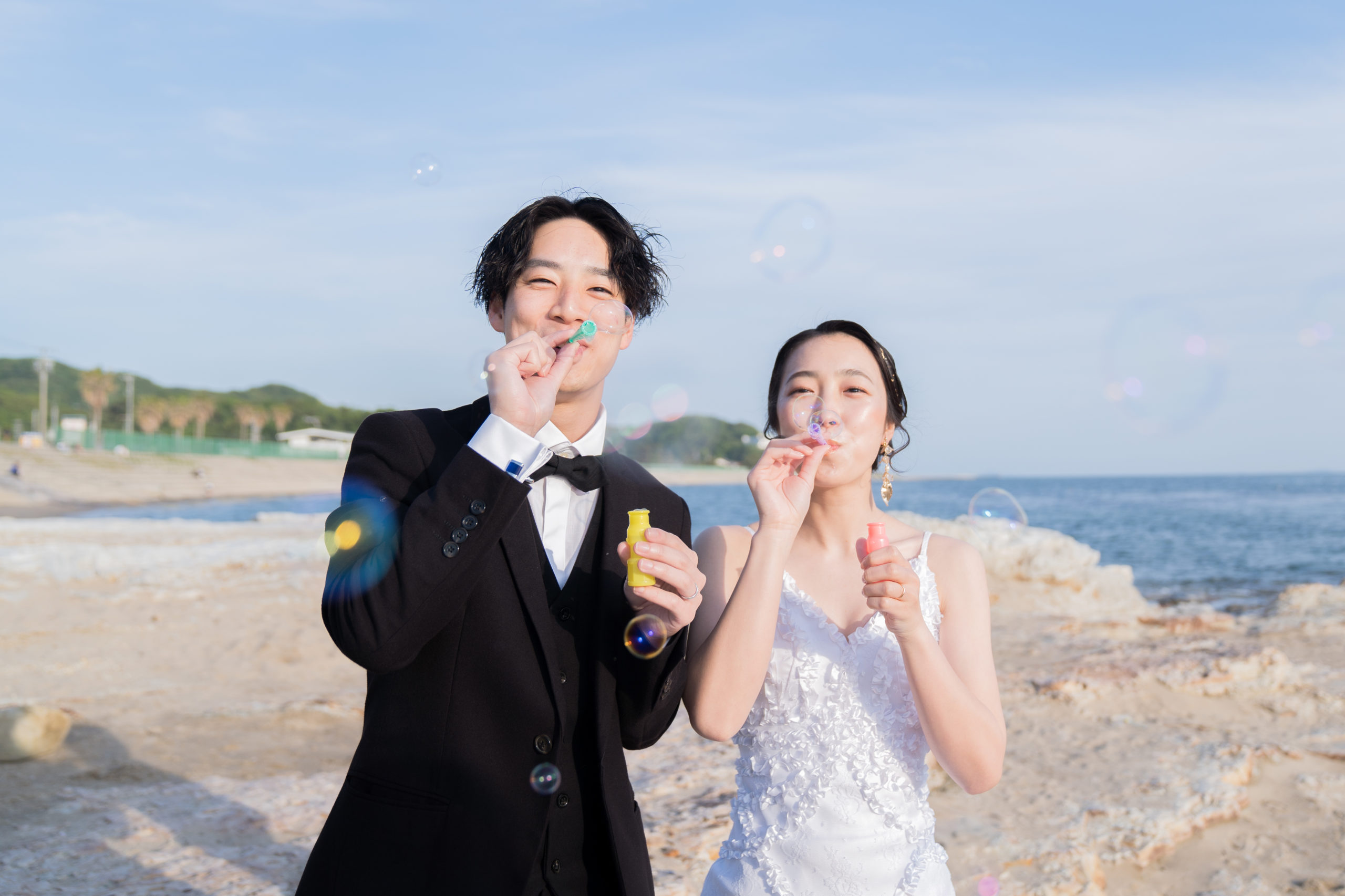 結婚式の前撮りを海で撮影しようと思い、ホームページを探していたら、素敵な写真を拝見したのでここに決めました!!
