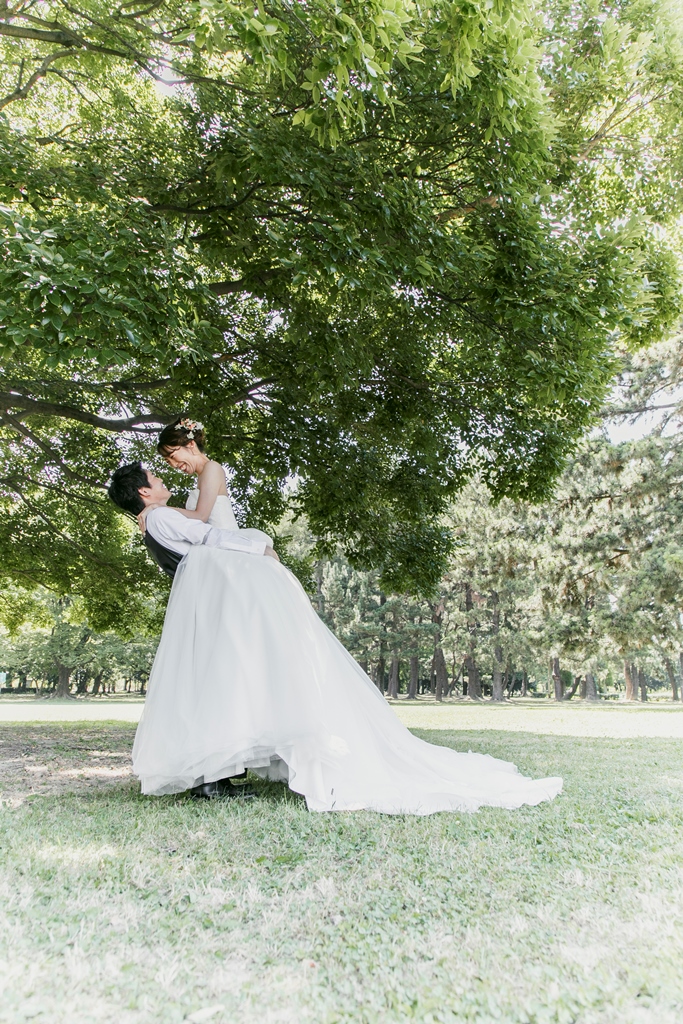 お天気もお二人の味方となり、綺麗な青空と緑に囲まれた撮影になりましたね!!暑い中での撮影でしたが、撮影中ずっと楽しそうにしているお二人♡