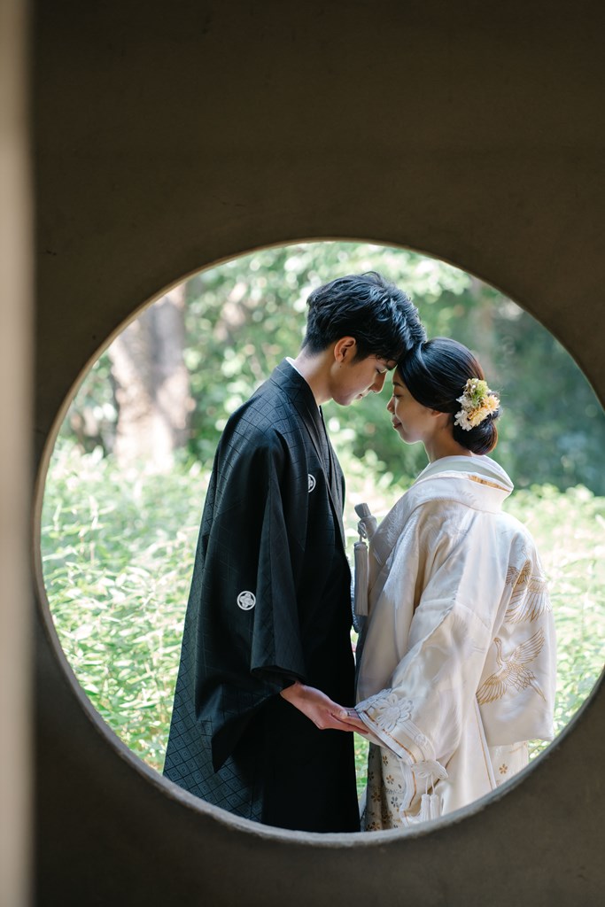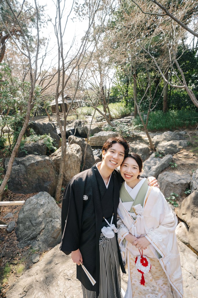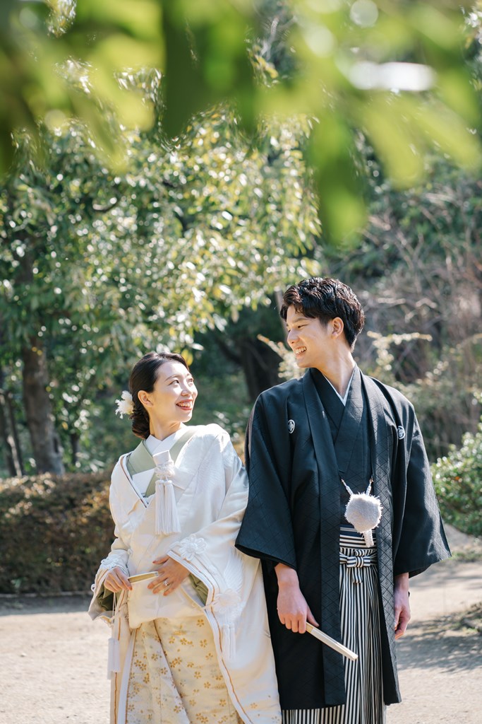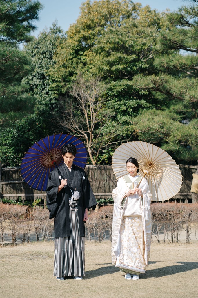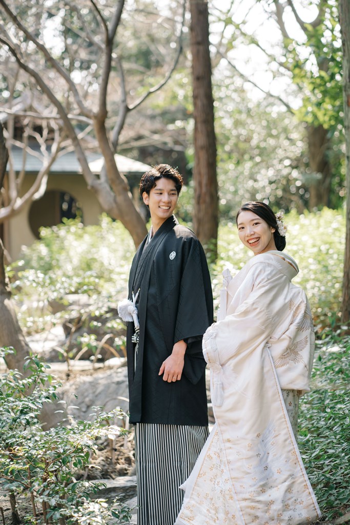 白無垢と色掛下の組み合わせがとてもお似合いで、白鳥庭園にマッチしてましたね!!