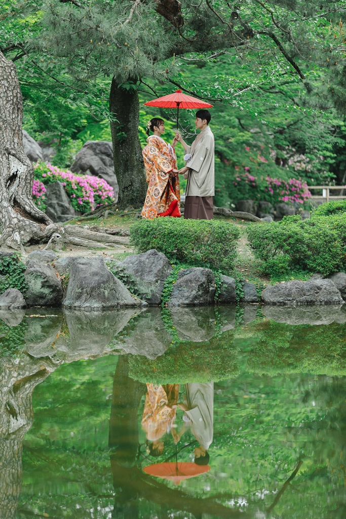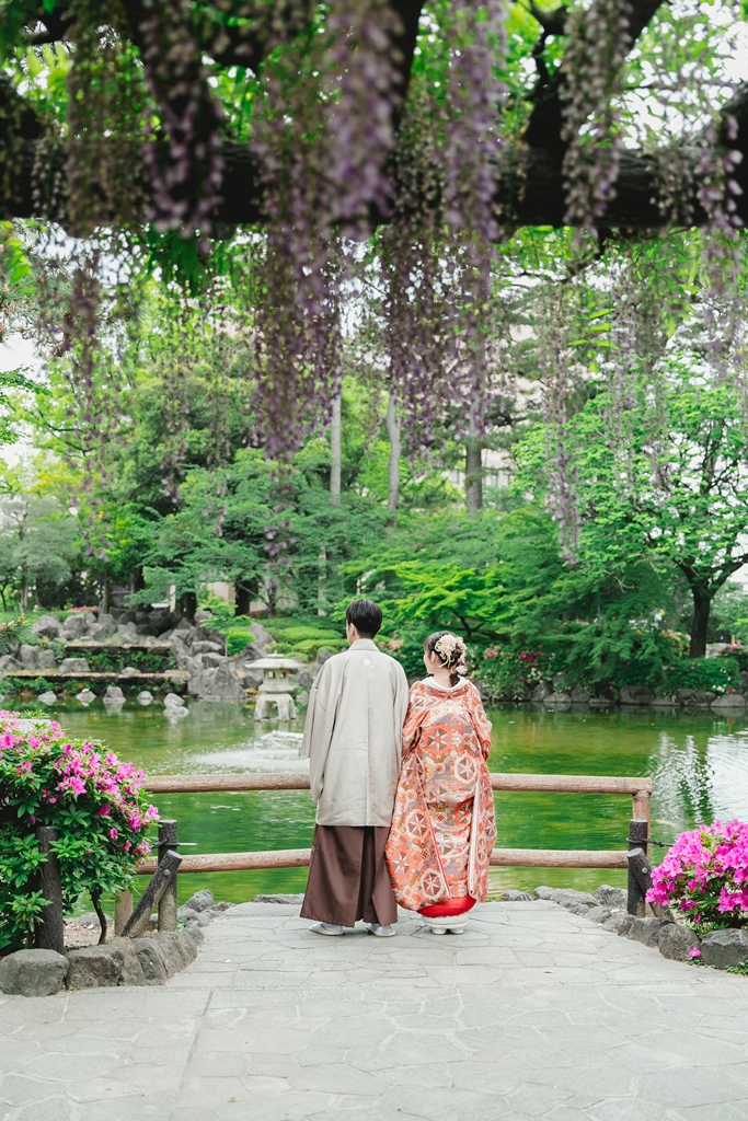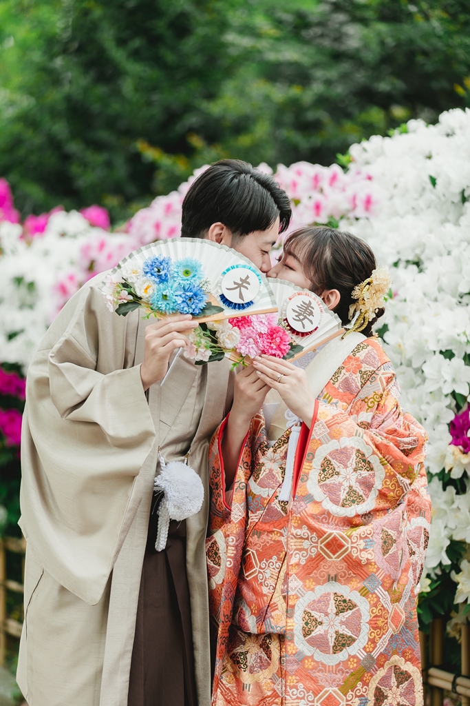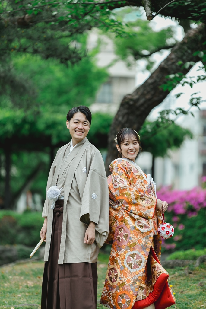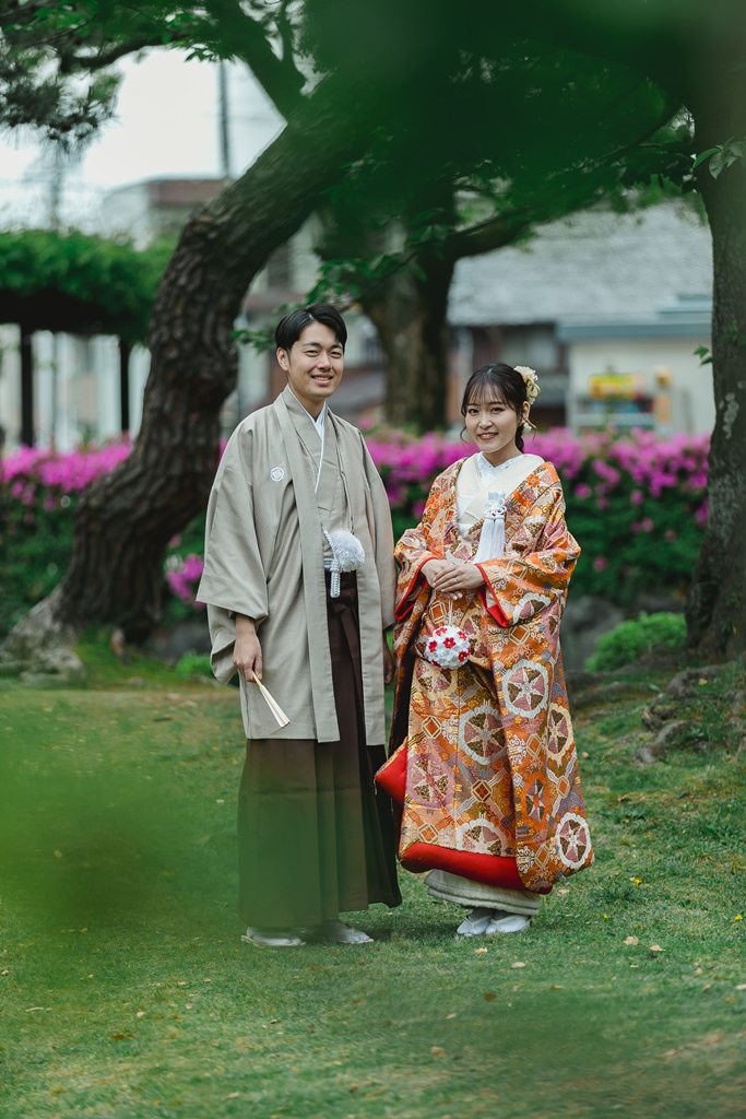 新緑と色鮮やかなお花がある中村公園で、和装ロケーション前撮り!!