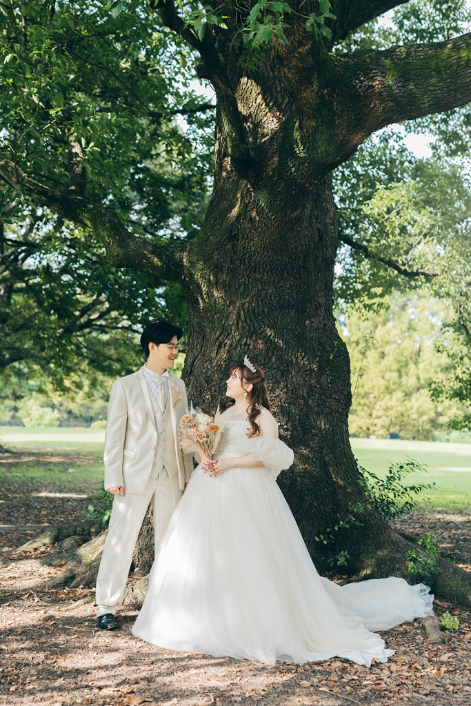 庄内緑地公園での王道、プリンセスのようなウェディングドレス、とてもお似合いでした。