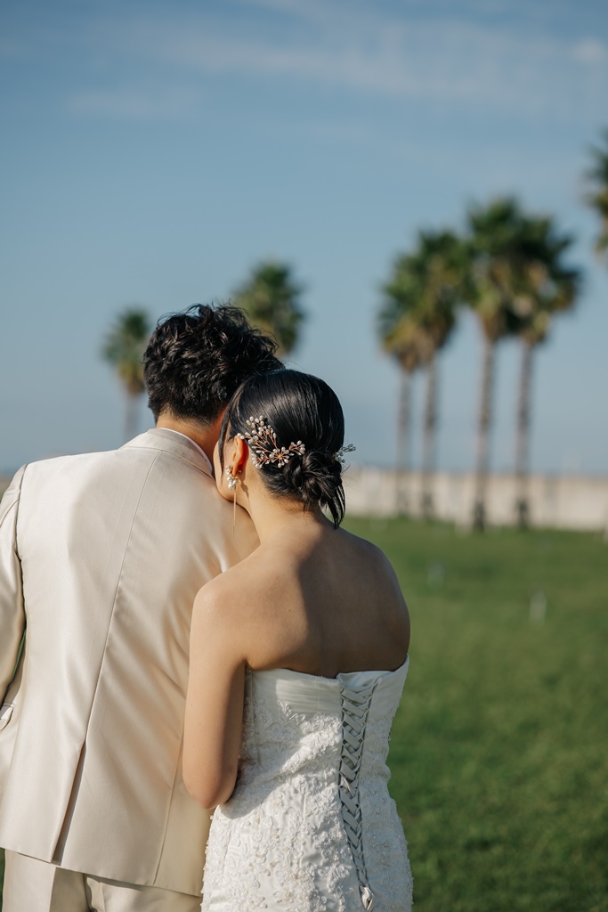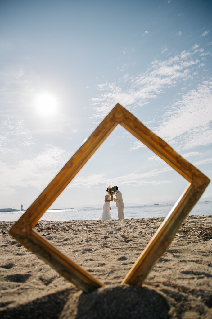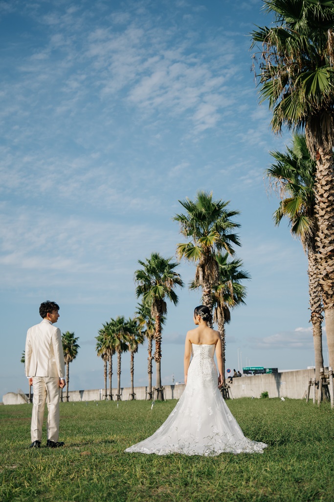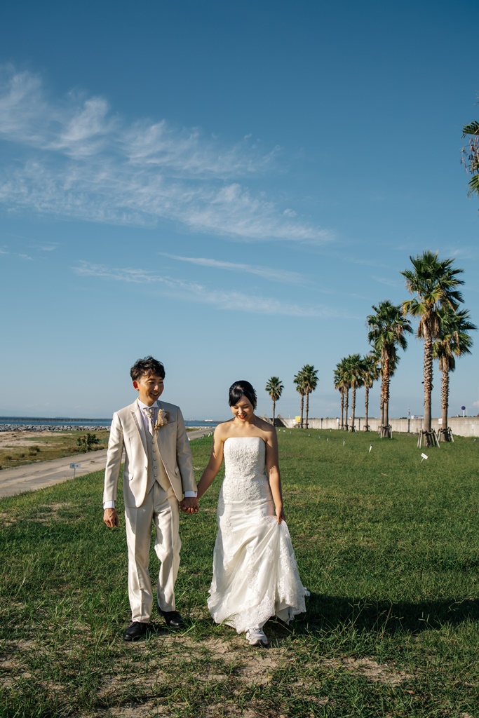 今回の撮影とお写真がお2人の素敵な想い出になってくれていたら何よりでございます。りんくうビーチではウェディングドレスもカラードレスとは打って変わって大人っぽくクールな雰囲気溢れておりとてもお似合いでした。