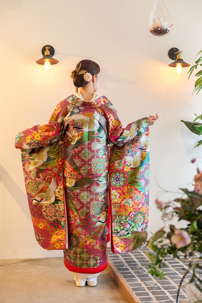 洋装は色々な形のドレスから選ぶことができ、チャペルでの撮影を希望していたので、とても満足です。 和装は室内での撮影だけでなく、外でもいろんなシーンで撮影してくださり、バリエーションたくさんで満足です!