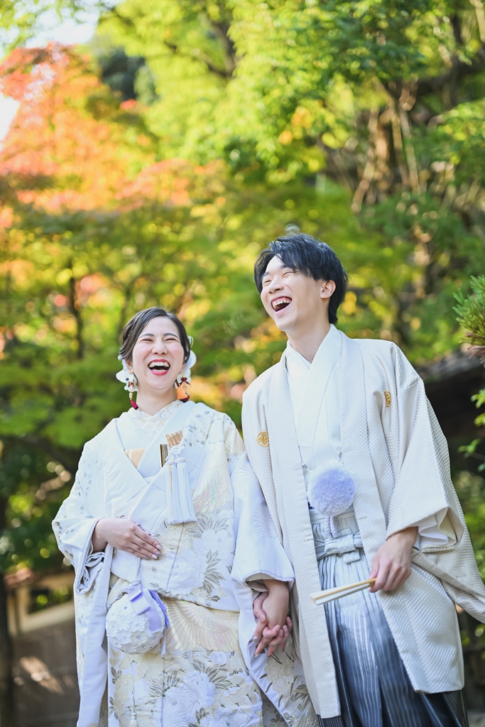 東山荘ではこれぞ!秋!といった綺麗な紅葉と、白無垢がとてもお似合いな新婦様の和装姿がとても印象的でした!