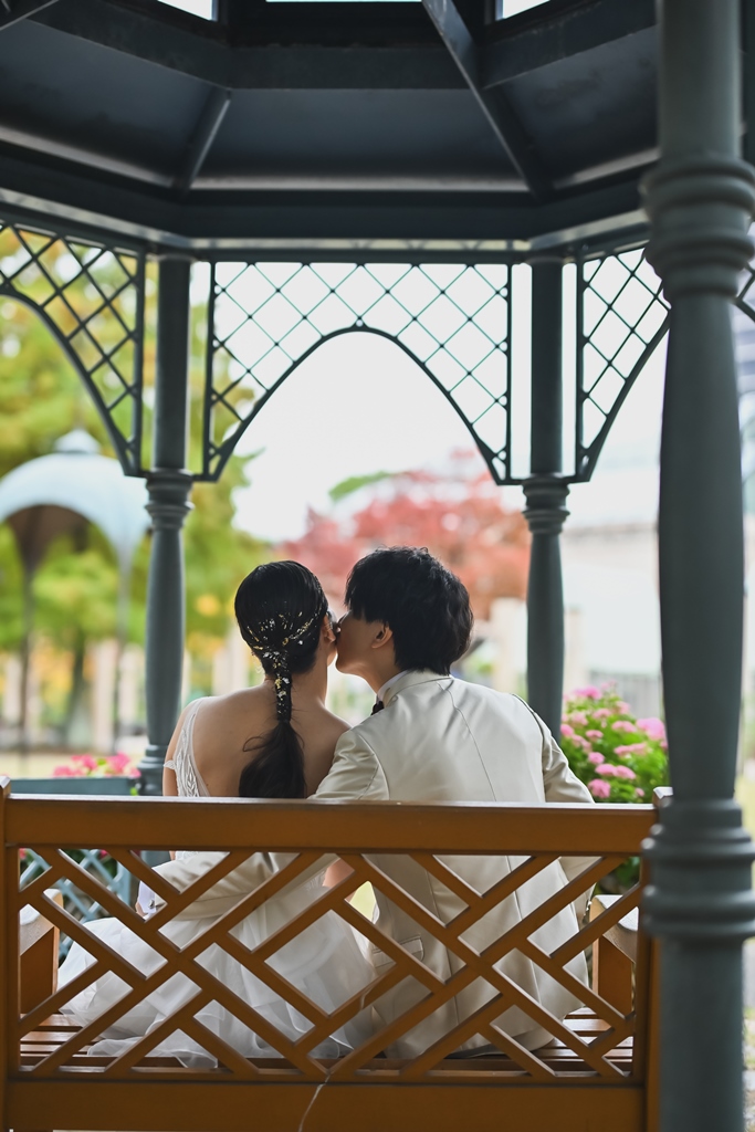 綺麗な日本庭園を楽しみながら、素晴らしい写真を撮るためのポーズの指示や、頻繁な衣装の整えなど、親身に寄り添ってサービスを提供していただいた。