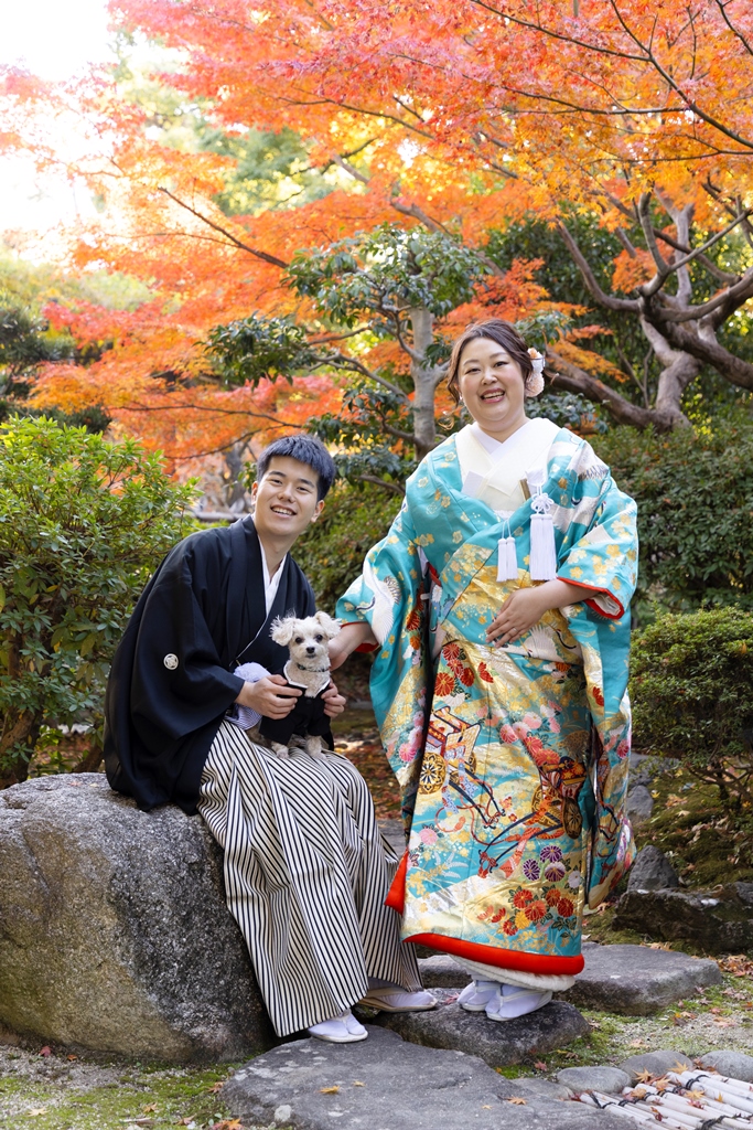満開の紅葉の中、お2人と愛犬と無事撮影いただけてなによりでございます。