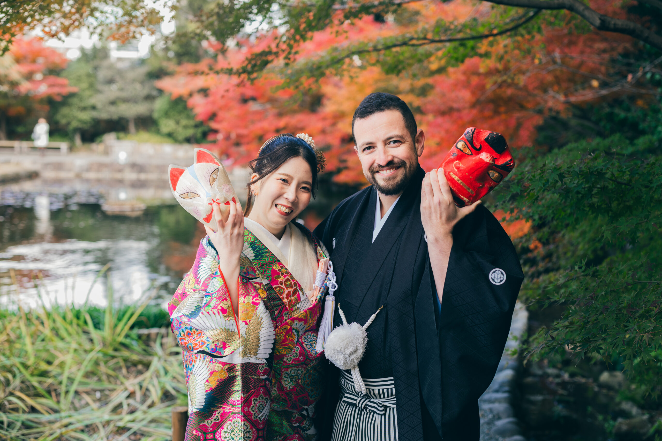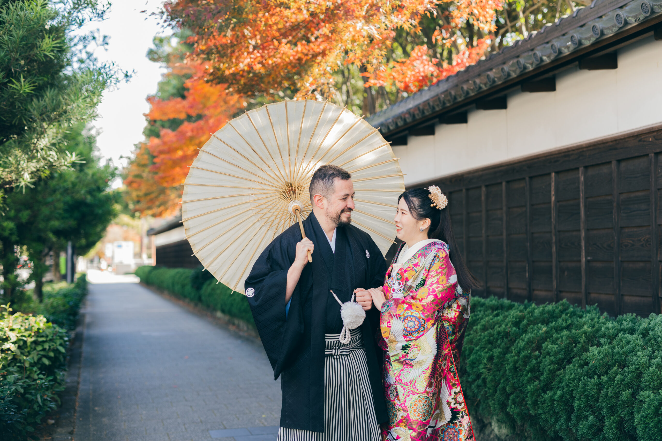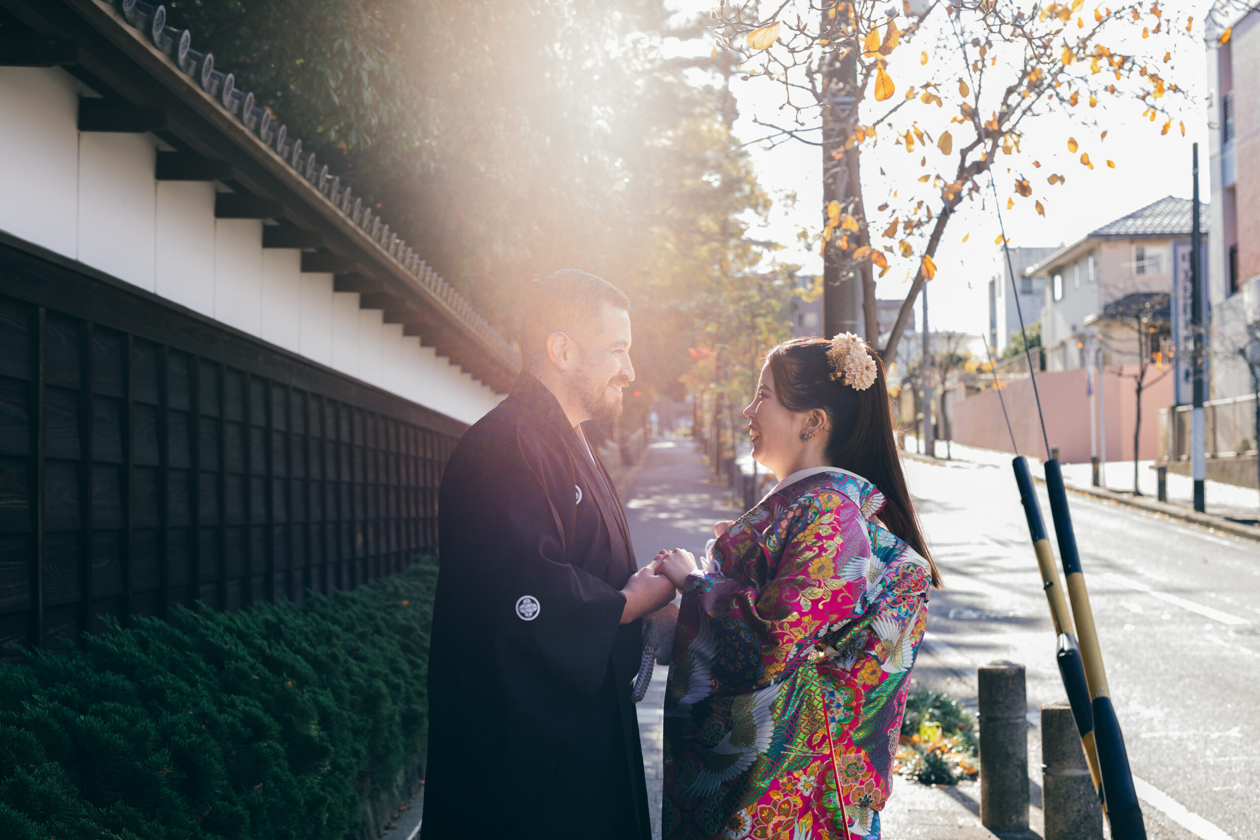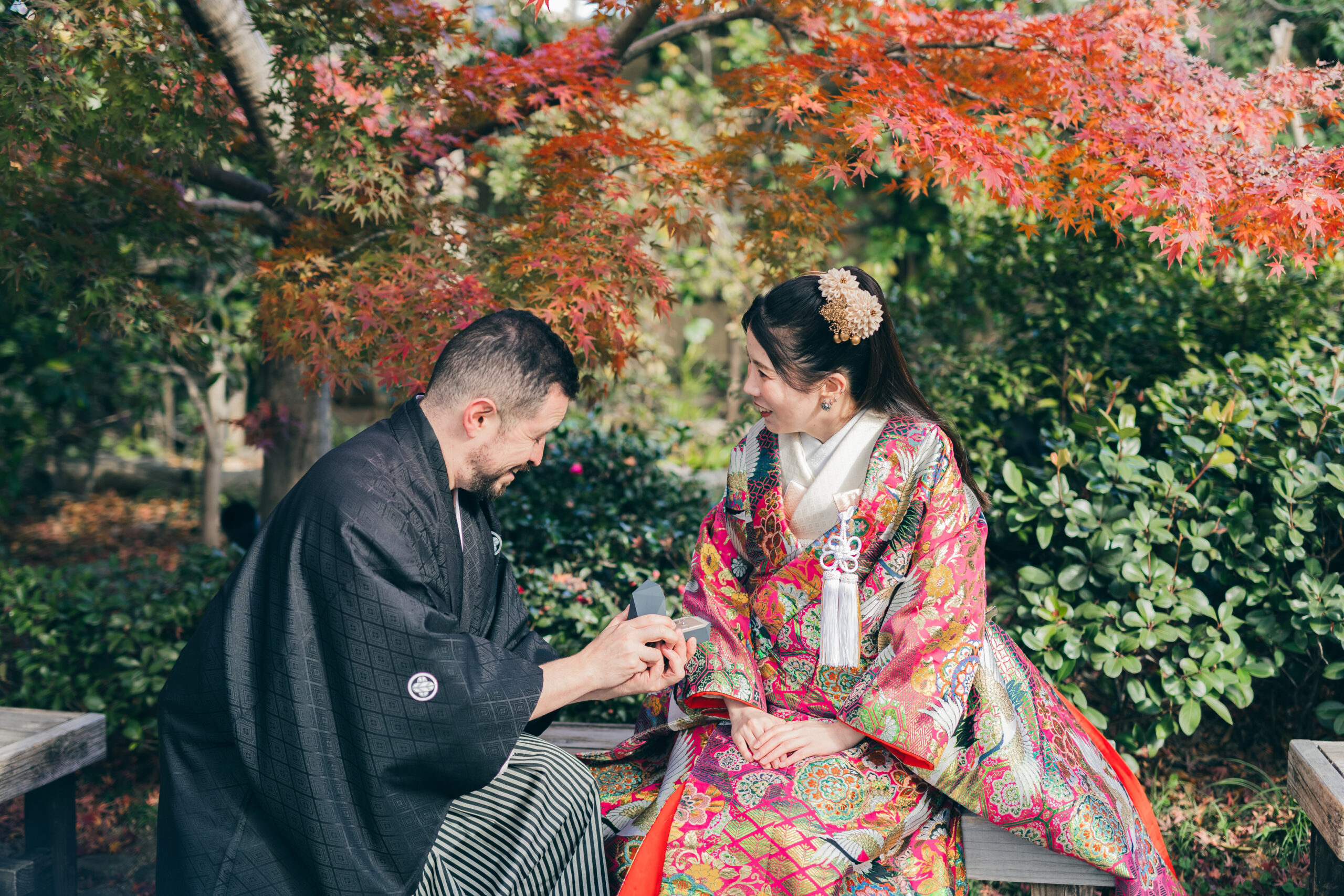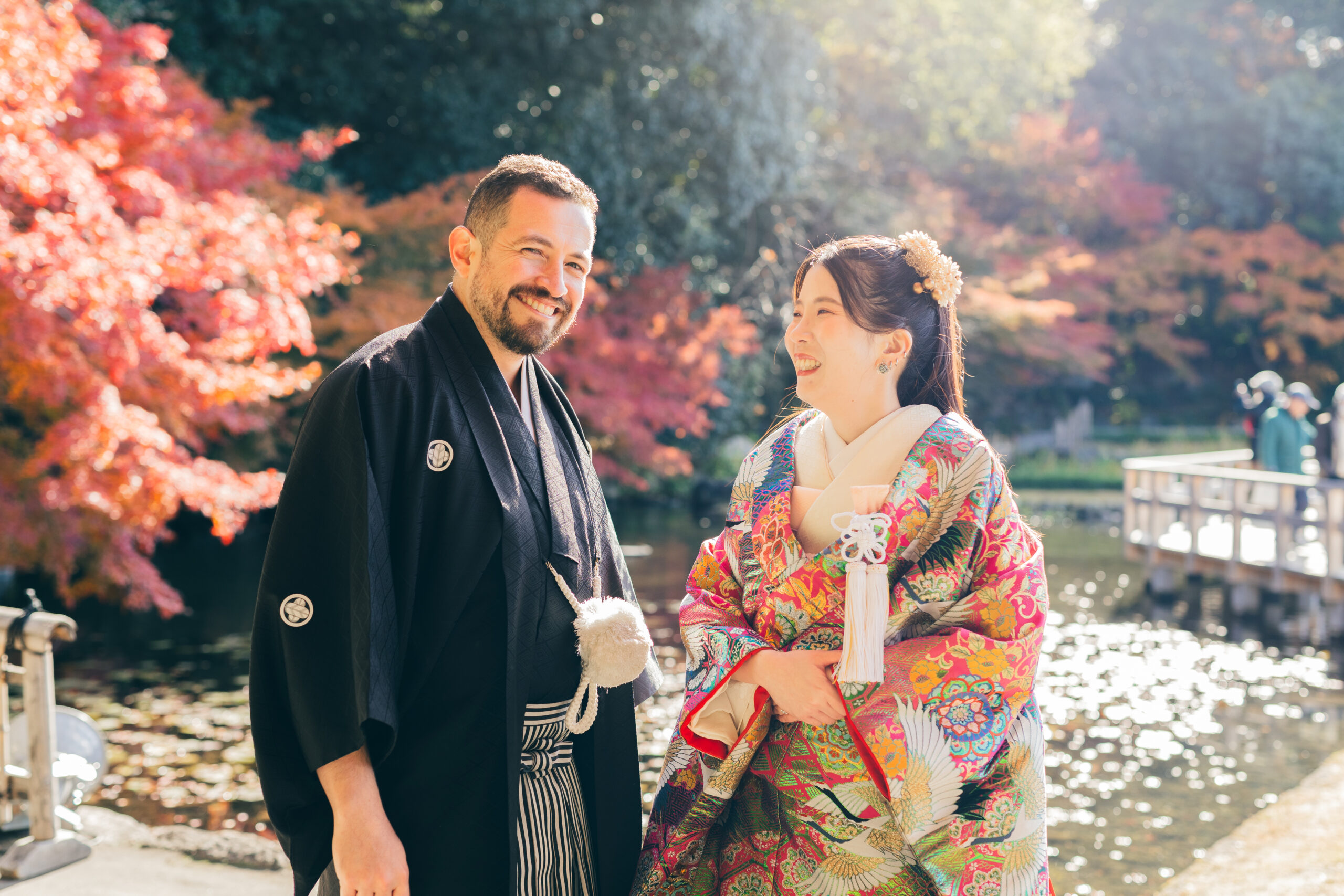 メキシコ人の彼が、日本旅行中に和装で写真を撮りたいと言ったのが、きっかけになります。彼が外国人の為、対応してもらえない場所がほとんどでしたが、sky weddingさんは快く引き受けてくださいました。