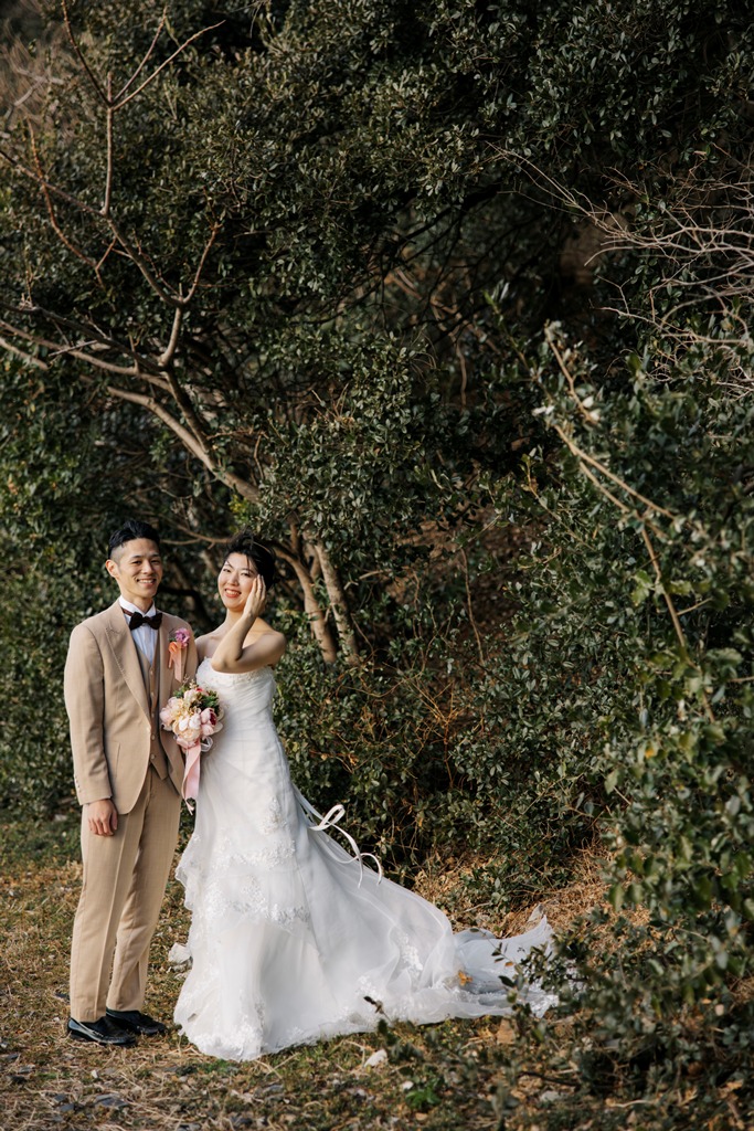 ネット検索でたまたま見つけたのですが、撮影のバリエーションが豊富なことと、比較的低予算で撮影できるのが魅力で決めました。またアクセスがよく気軽に行けたのも良かったです。前撮りにめちゃくちゃこだわりがあるわけではなかったので、シンプルに様々なカットが撮影できればいいなと思い、いろいろ総合判断してここに決めました。