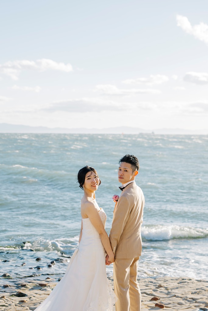 内海でのロケーション撮影で強風で大変でしたが、カメラマンさんもスタイリストさんもとても気遣ってくださりスムーズに撮影ができました。カットも色々とご提案くださり、大変満足です。小物やアクセサリーは最低限でしたが、ロケーションもよく、カットもたくさん撮っていただいたのでトータルでとても満足してます。