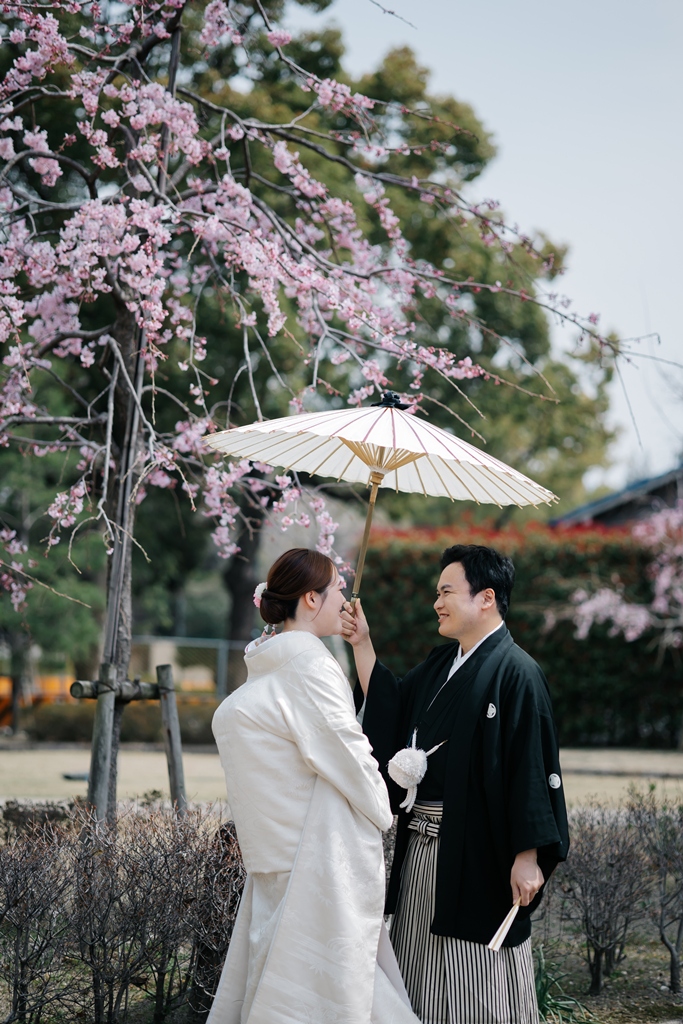 桜とリンクした可愛らしい髪飾りもとてもお似合いでした!お二人の仲睦まじい仲睦まじい姿が写真にも溢れてますね!!