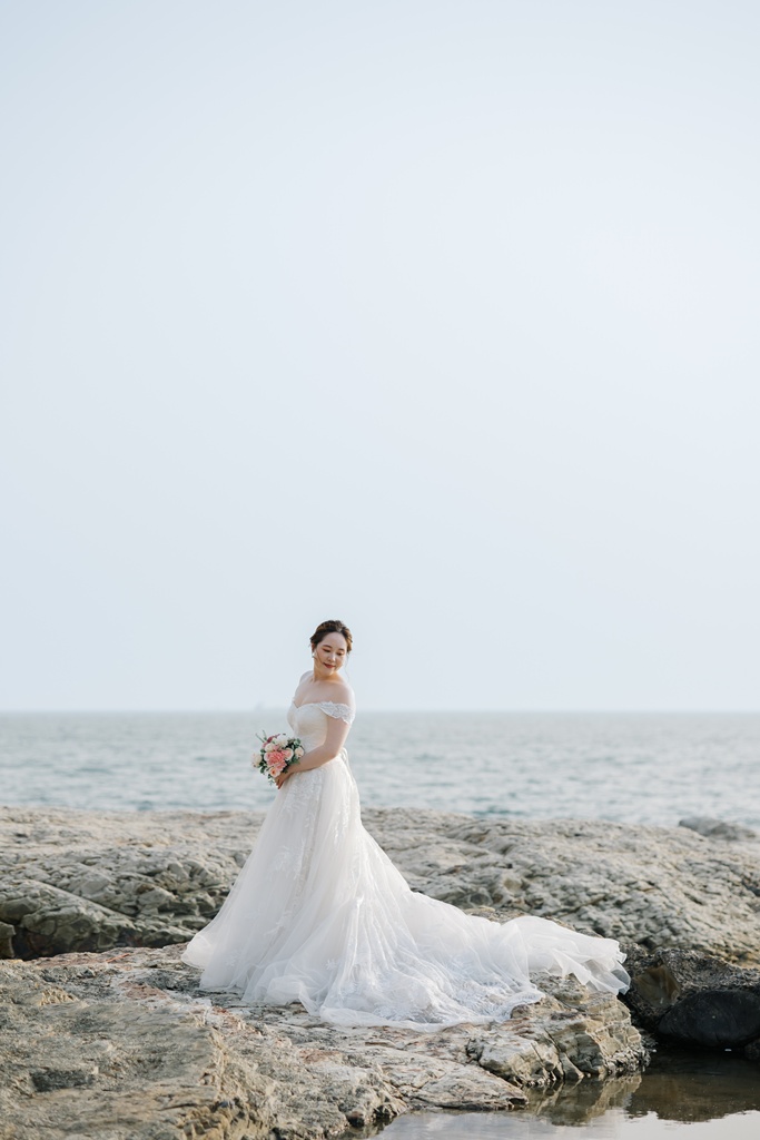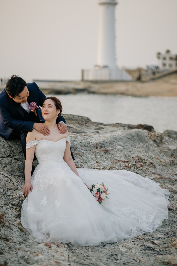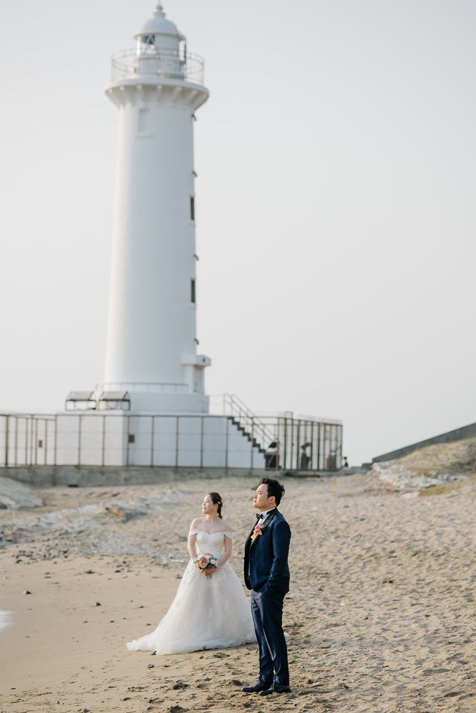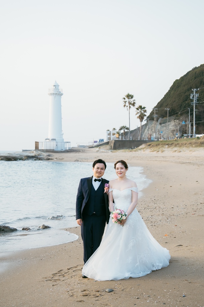 中村公園での撮影に続き内海でのお疲れ様でした。こだわって取り寄せいただいたウェディングドレスが新婦様にとてもお似合いで素敵でした!