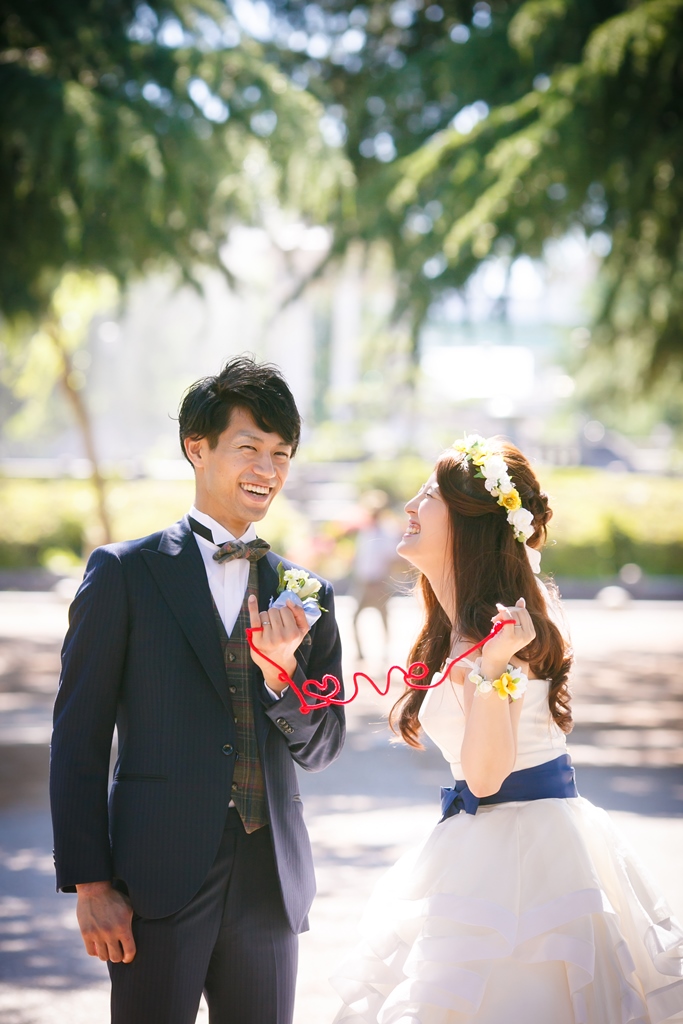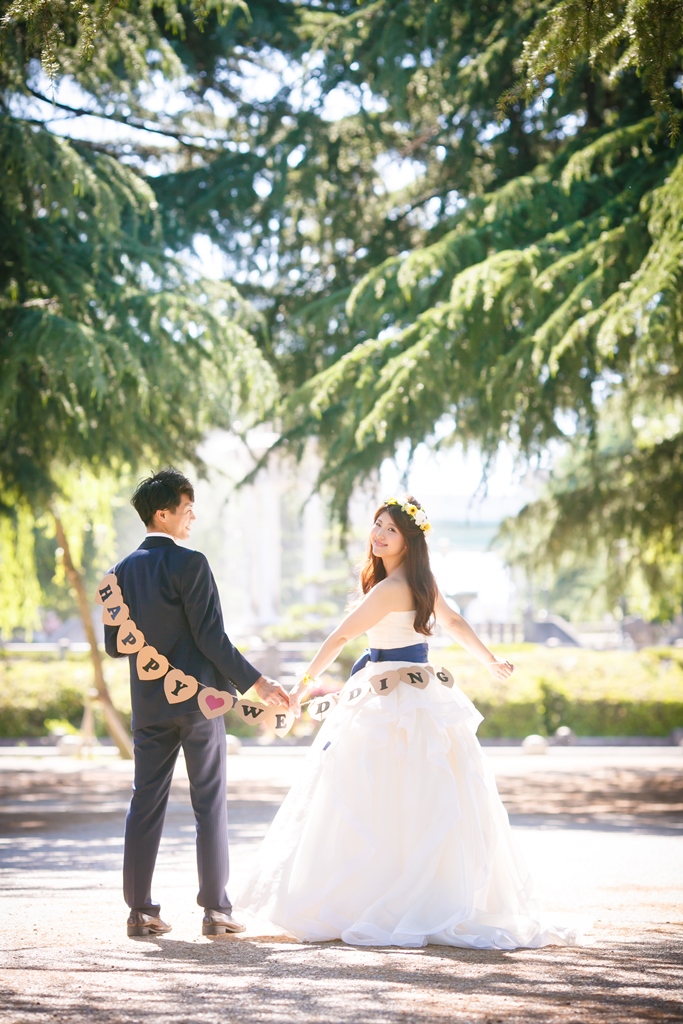 鶴舞公園での洋装前撮り、本当に素敵なお写真ばかりでした!お二人でしっかり準備した小物なども本当に可愛くオシャレな物ばかりで