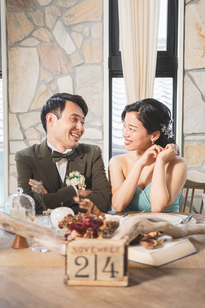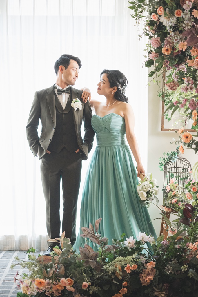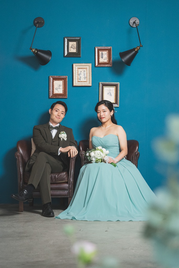 スタジオという限られた空間の中でも、ふたりらしさが自然と引き立ち、光の入り方や背景のバランス、そしておふたりの表情までもが美しく調和した一日となりました。ドレスやタキシードに身を包まれたおふたりの姿は、華やかさと品の良さをあわせ持ち、まるで映画のワンシーンのような瞬間が次々と生まれていたのがとても印象的でした。