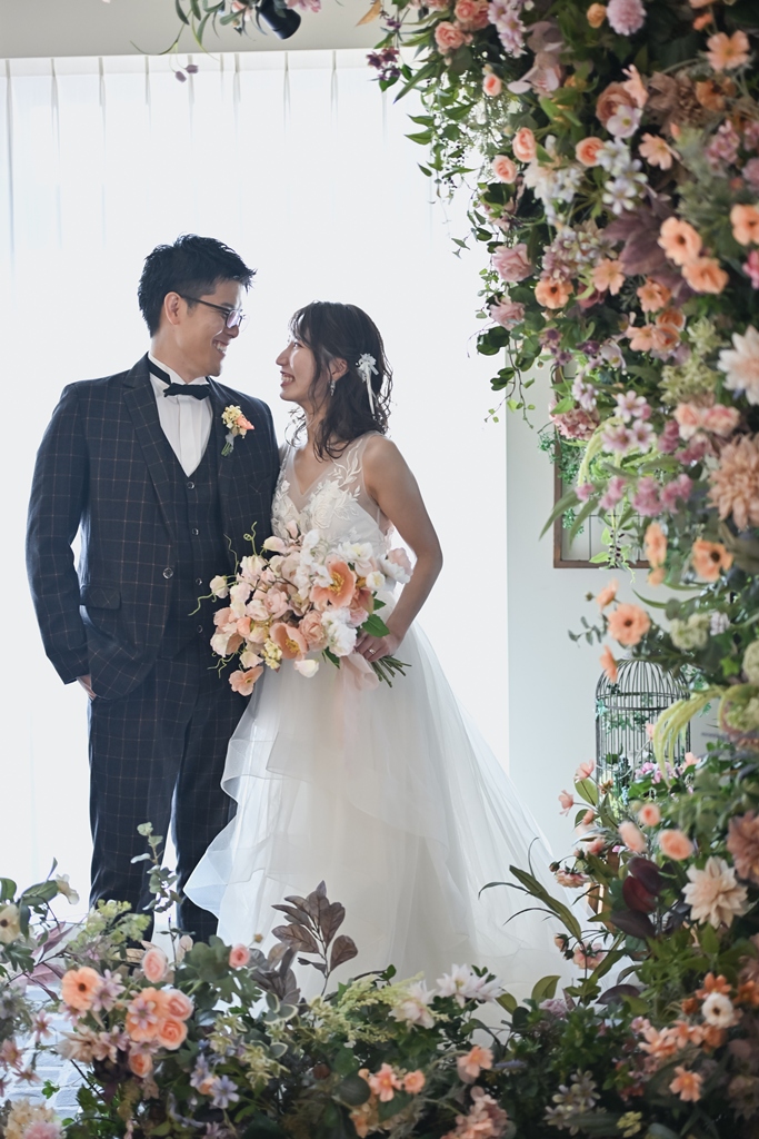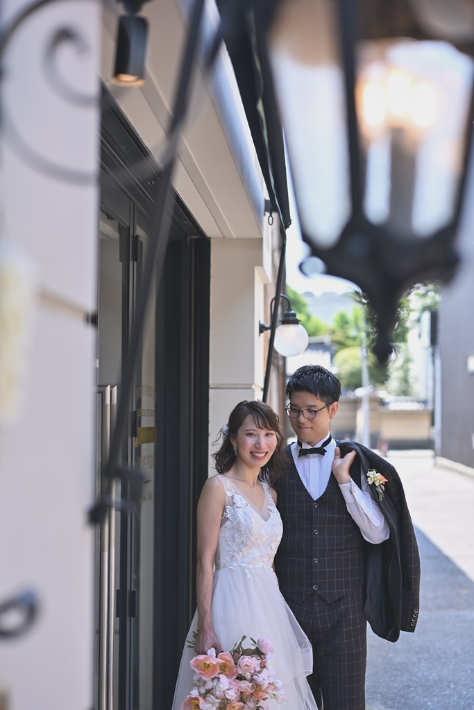 スタジオに足を踏み入れた瞬間から、光と影が織りなす幻想的な空間で、お二人の笑顔が一層輝く瞬間を共に過ごせたことを心より嬉しく思います。お二人の自然な表情や、衣装の美しさが引き立つ瞬間をカメラに収めるたび、スタッフ一同も胸が高鳴りました。撮影中の楽しそうな笑い声や、お互いを見つめ合う温かい眼差し、一つひとつのシーンが特別な思い出として心に刻まれたことと思います。今回の撮影が、お二人のこれからの人生に彩りを添える大切な一ページとなりますよう、心から願っております。今後とも末永くお幸せにお過ごしください。