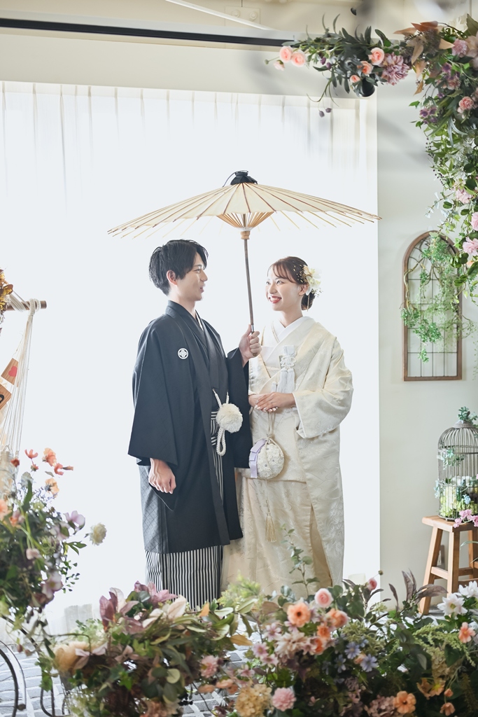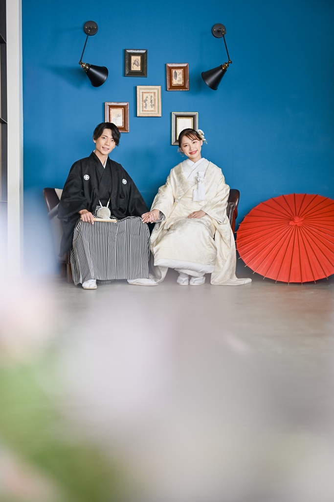 異なる装いが持つそれぞれの魅力を一日で堪能できるのも、このスタジオならではの大きな魅力です。洋装では自然体の笑顔や柔らかな空気感、和装では格式ある姿と品格。そのどちらもお二人らしさと重なり合い、一瞬一瞬がかけがえのない物語として刻まれていきました。