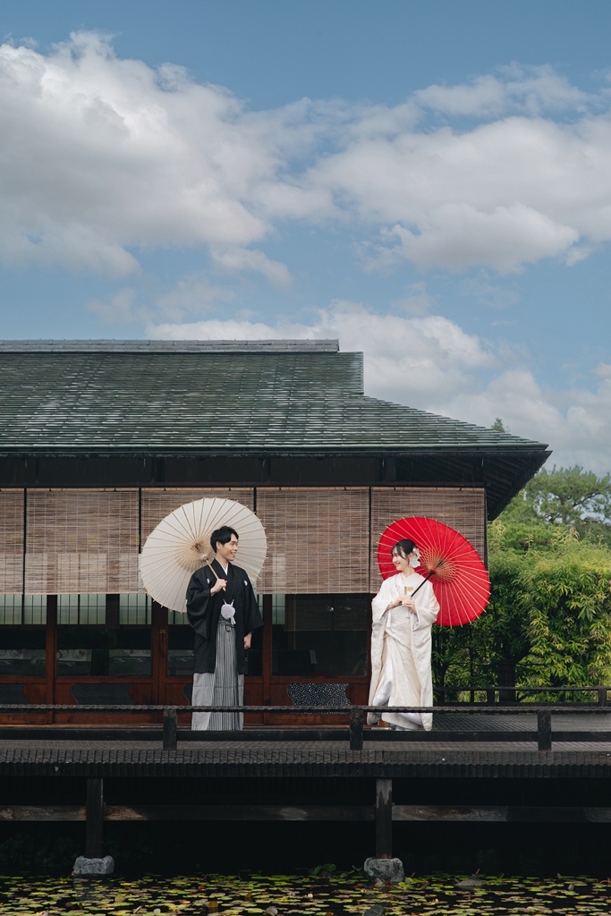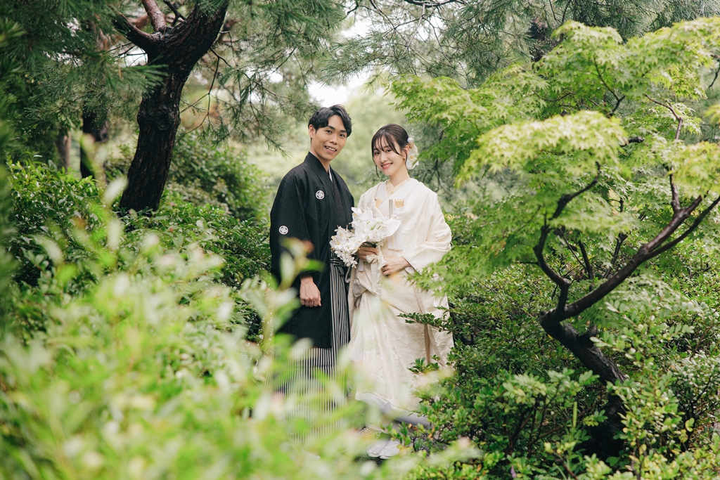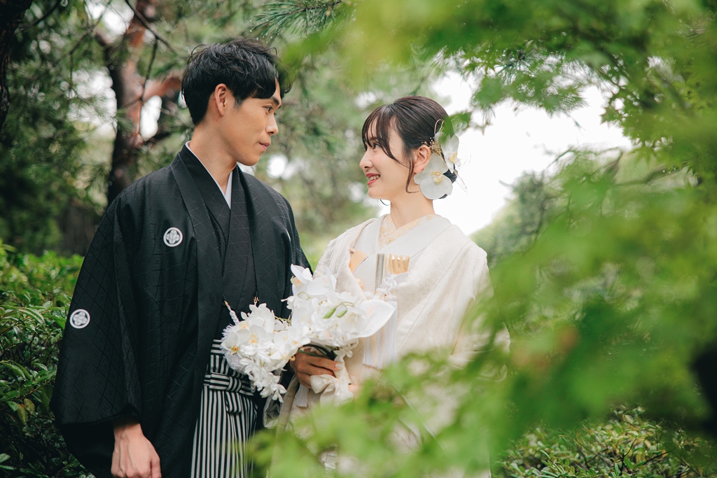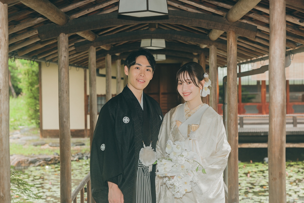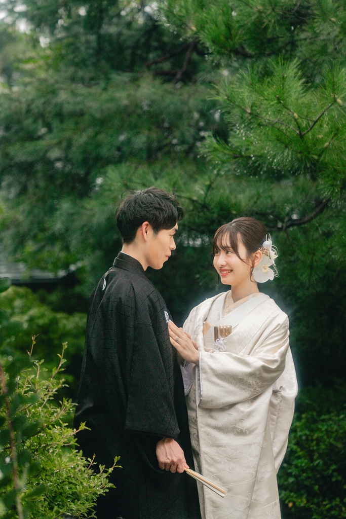 撮影の合間に見せてくださった自然な笑顔や、お互いを想い合う眼差しが、白鳥庭園の静寂と調和し、まるで時間が止まったかのような特別な空気を生み出していました。和装ならではの気品と、白鳥庭園の四季折々の風情が重なり合い、写真一枚一枚におふたりの人生の節目としてふさわしい深みが宿ったと思います。
