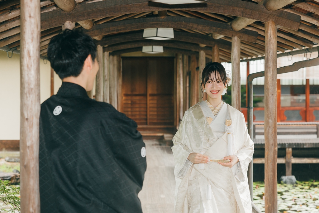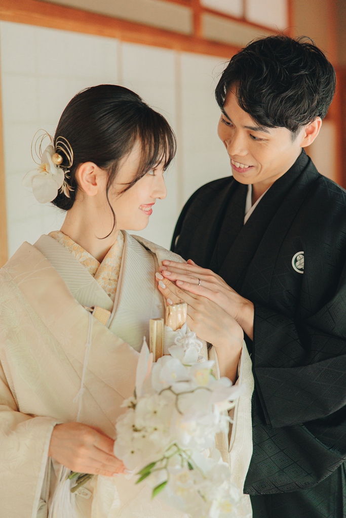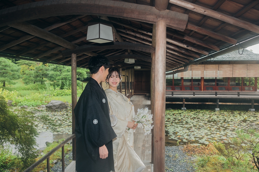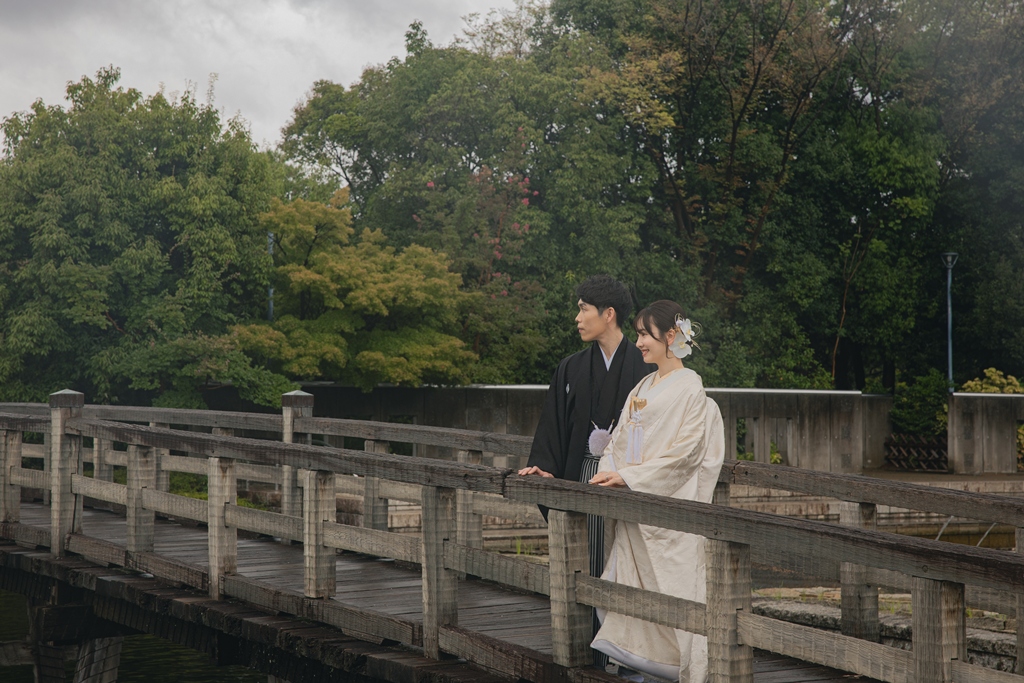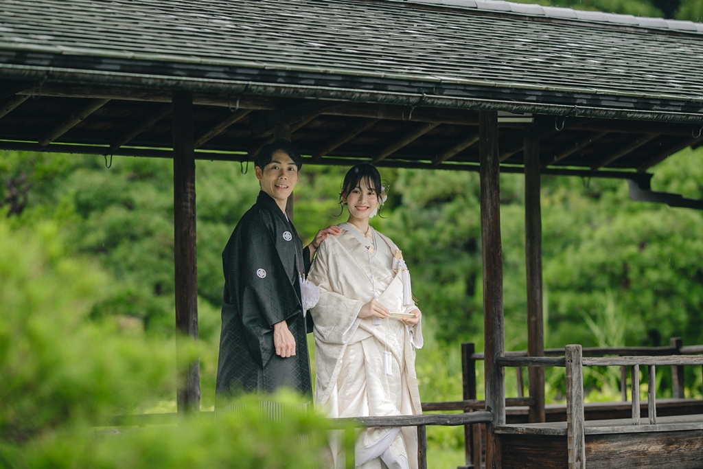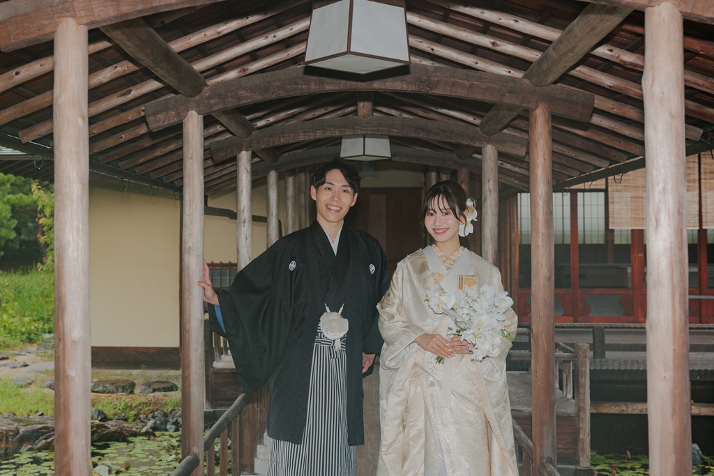 撮影の合間に見せてくださった自然な笑顔や、お互いを想い合う眼差しが、白鳥庭園の静寂と調和し、まるで時間が止まったかのような特別な空気を生み出していました。和装ならではの気品と、白鳥庭園の四季折々の風情が重なり合い、写真一枚一枚におふたりの人生の節目としてふさわしい深みが宿ったと思います。