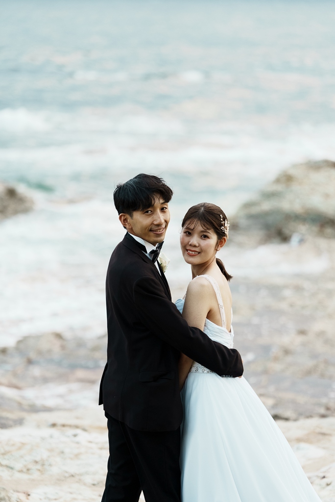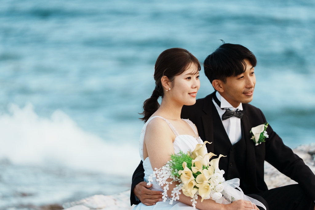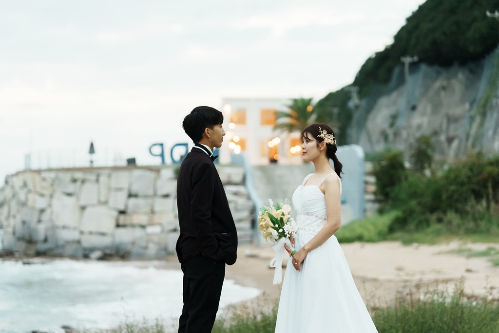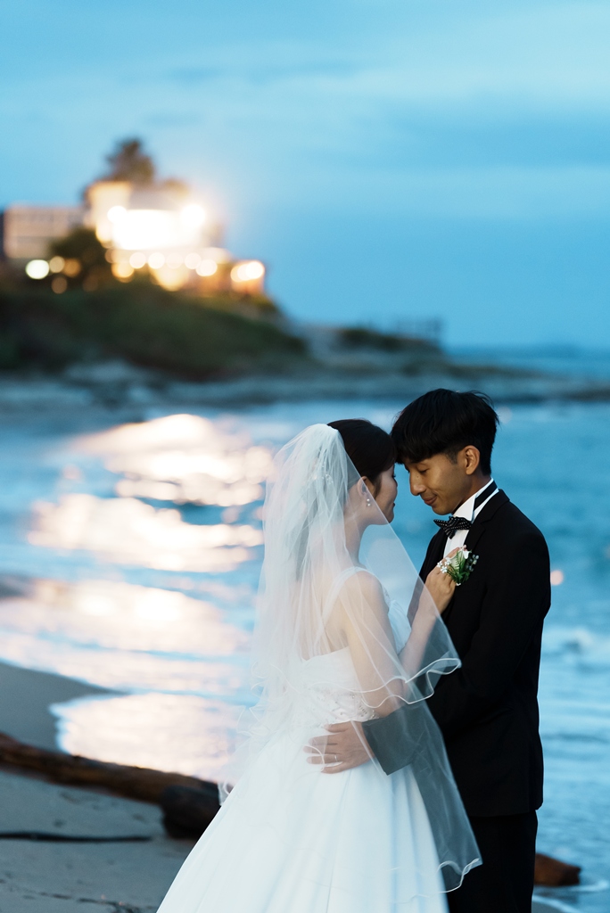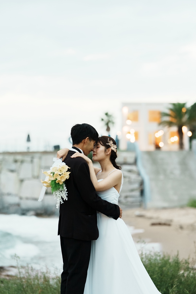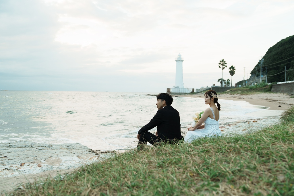 おふたりの洋装スタイルが、この海辺の景色と完璧に調和し、カジュアルでありながら上品な、心に残る前撮り時間が生まれました。スタッフ一同、おふたりと一緒にこの特別な時間を共有できたことを心から誇りに思います。