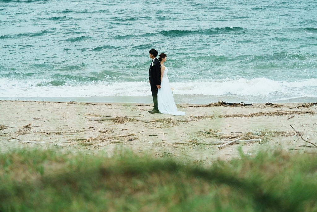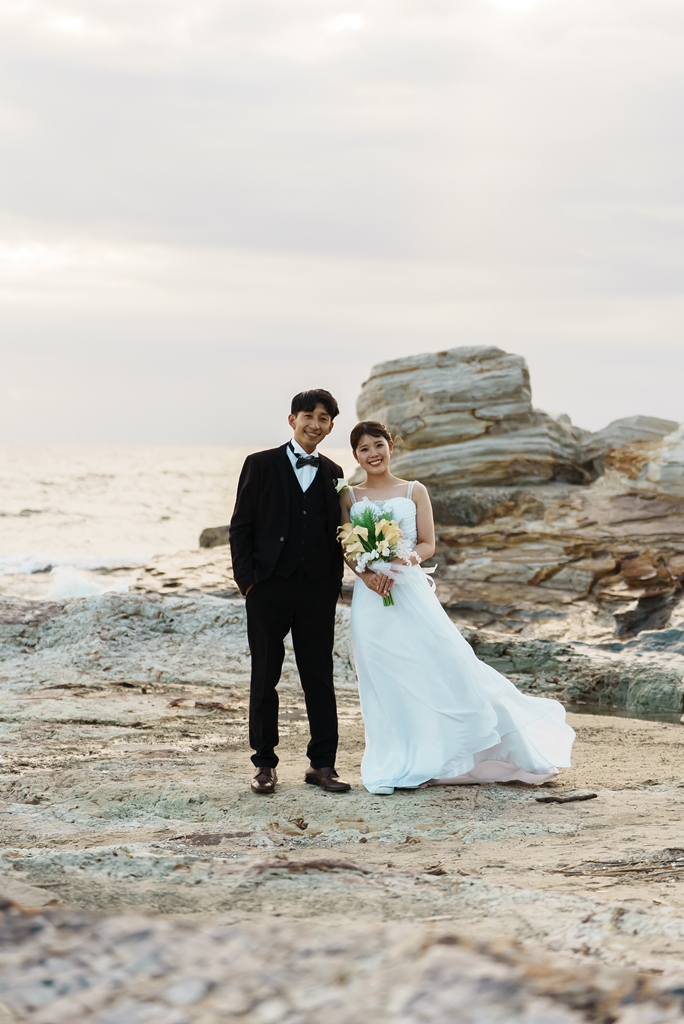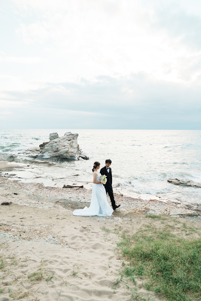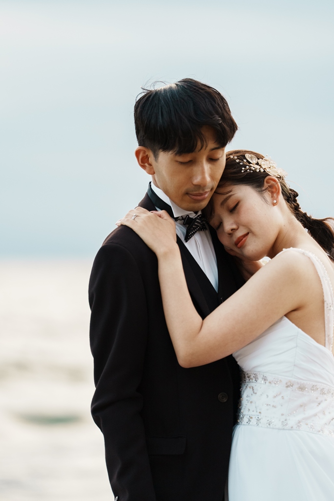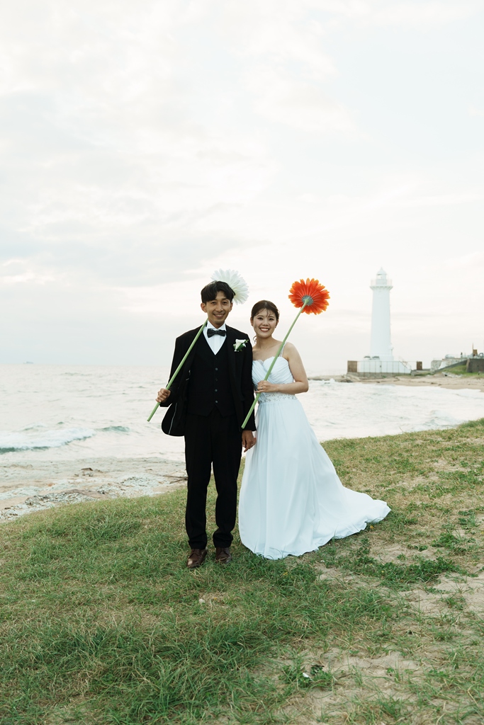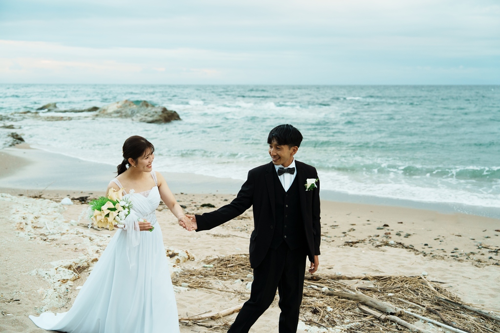 おふたりの洋装スタイルが、この海辺の景色と完璧に調和し、カジュアルでありながら上品な、心に残る前撮り時間が生まれました。スタッフ一同、おふたりと一緒にこの特別な時間を共有できたことを心から誇りに思います。
