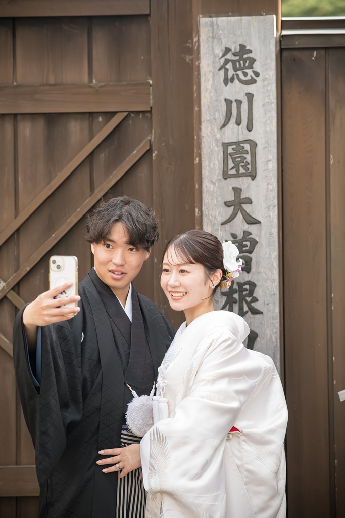 少し照れながらも楽しそうに過ごされる姿を拝見し、写真以上の“記憶”として残る温かな時間になったと感じております。徳川園は、ただ美しいだけではなく、歩くたびに歴史と自然の深さが伝わる場所です。