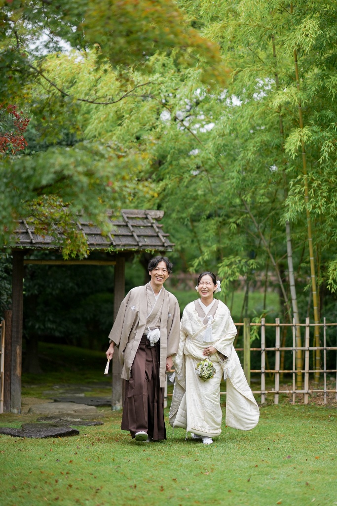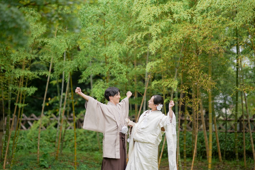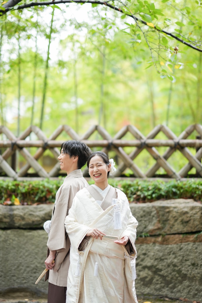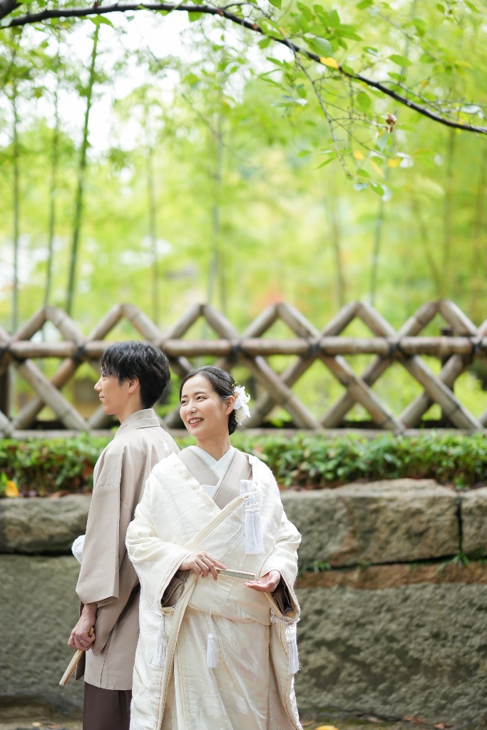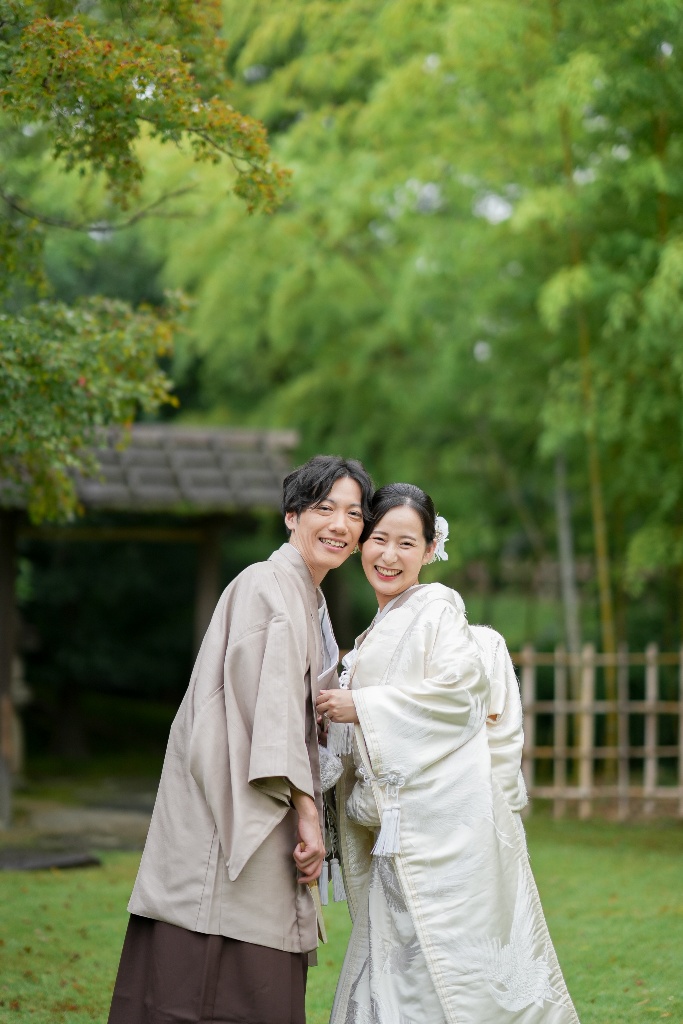 柔らかな光が差し込む参道や木漏れ日の中で佇むおふたりの姿は、本当に優雅で、見ている私たちも温かい気持ちになりました。