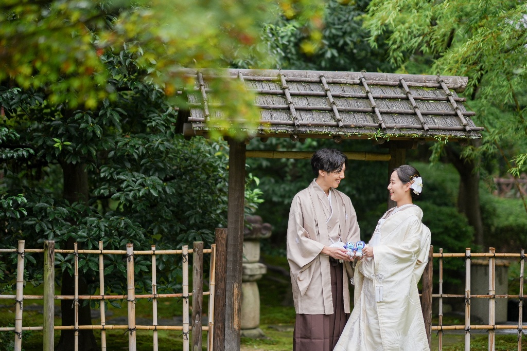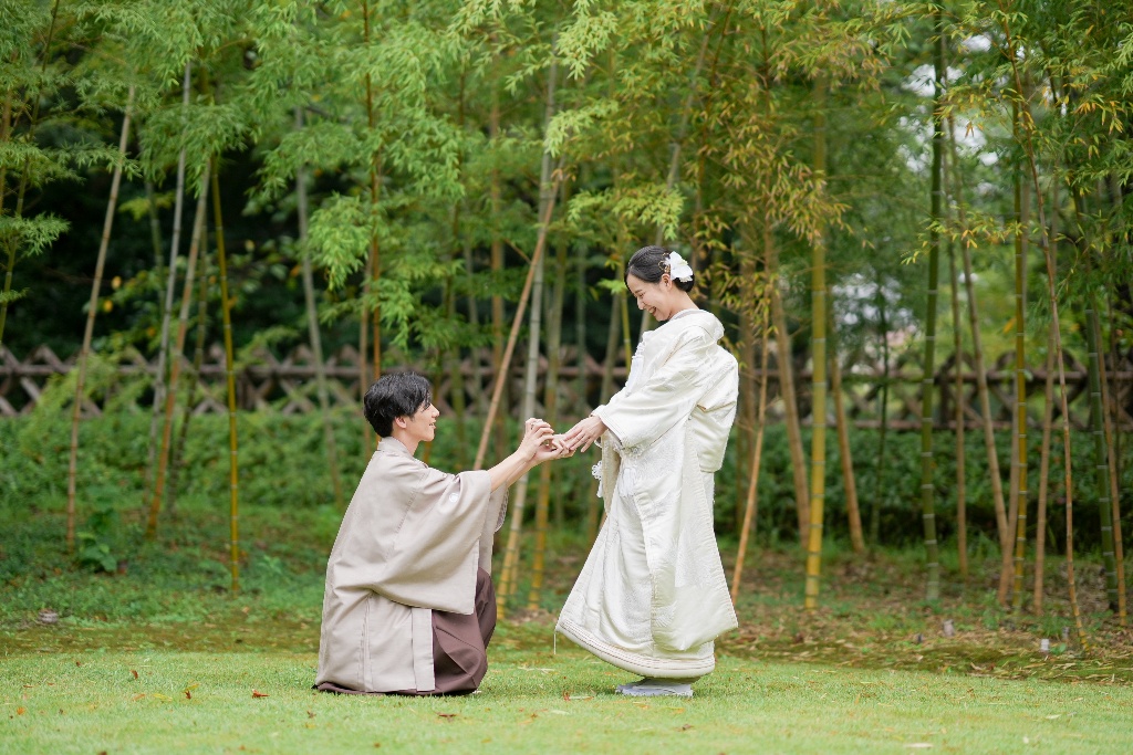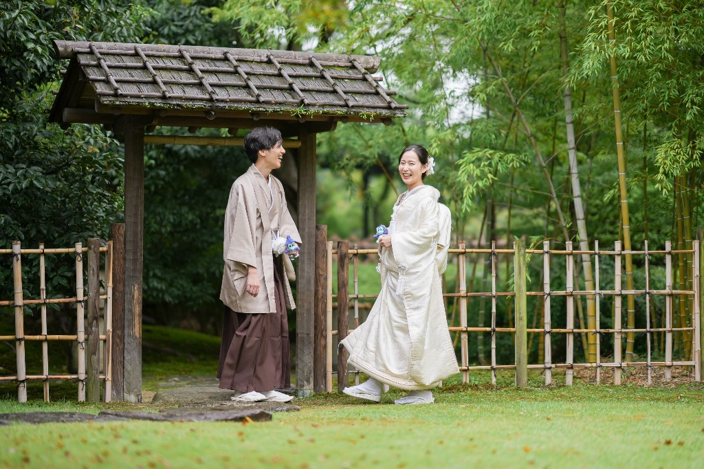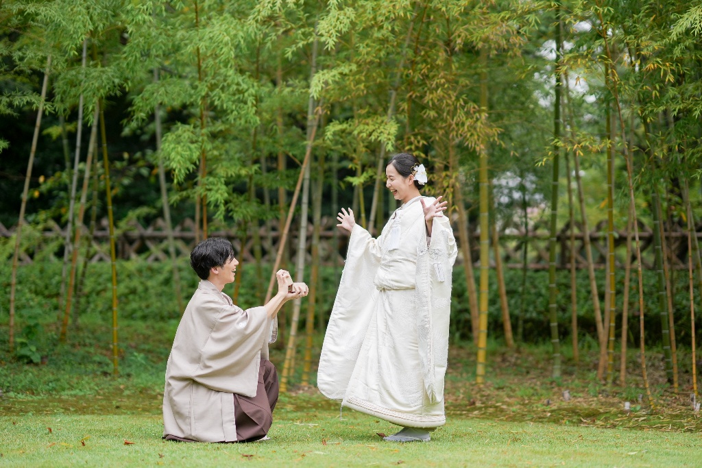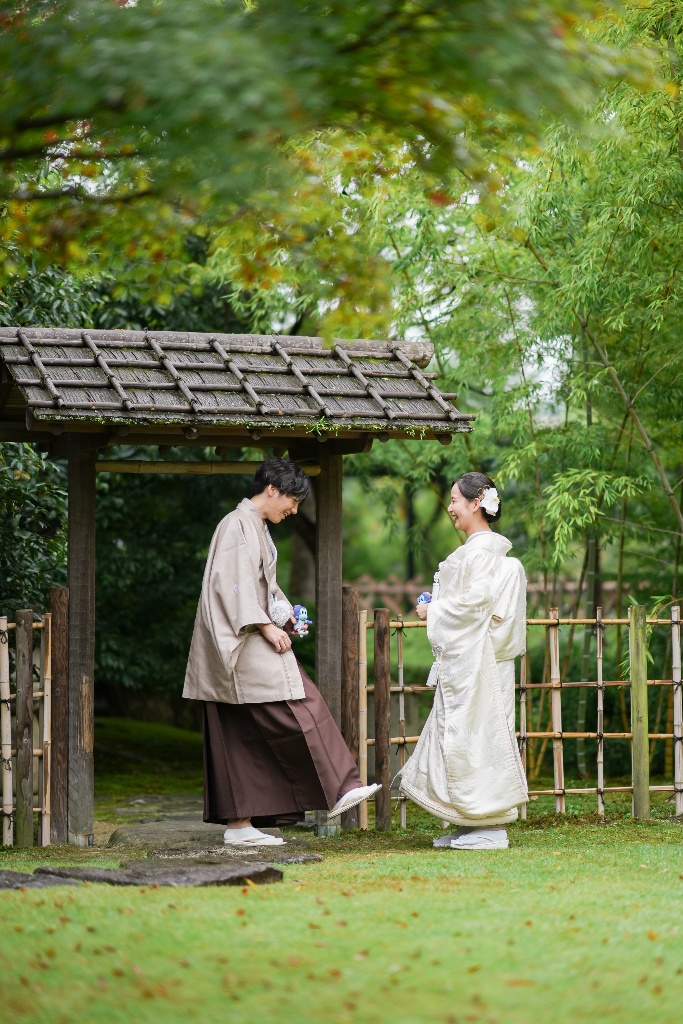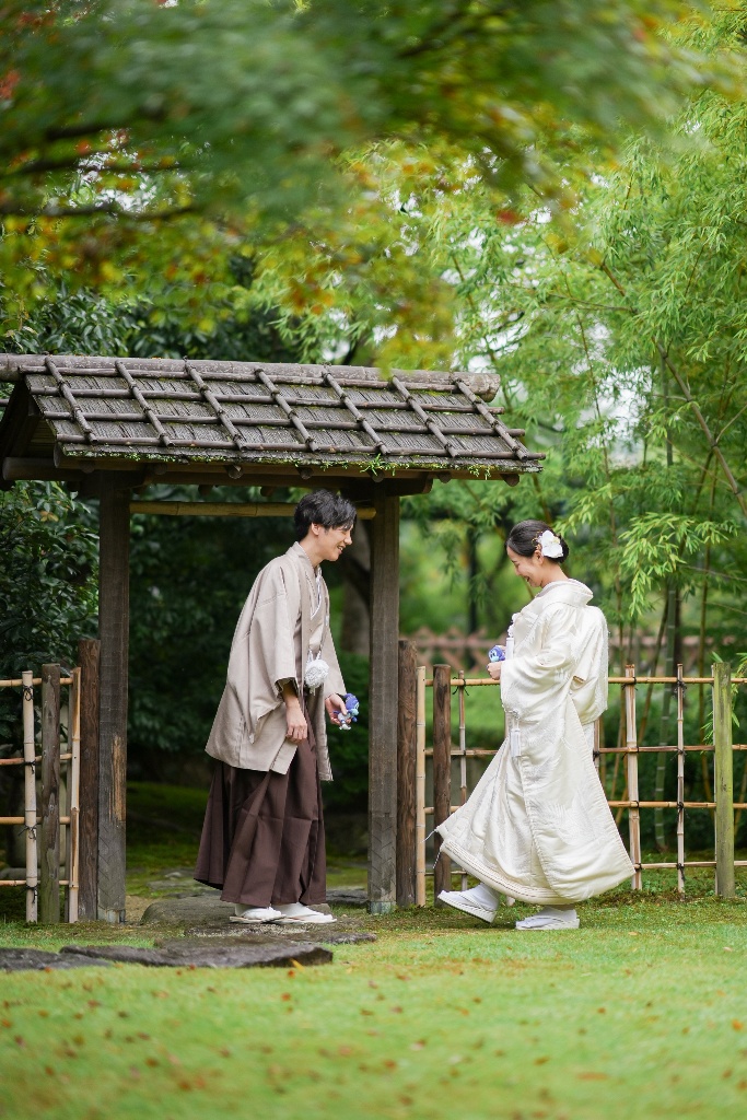 柔らかな光が差し込む参道や木漏れ日の中で佇むおふたりの姿は、本当に優雅で、見ている私たちも温かい気持ちになりました。