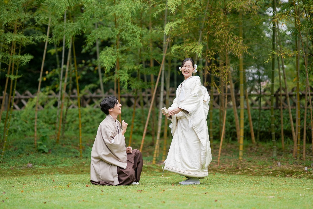 白無垢や色打掛の細やかな意匠が自然の中に映え、おふたりの笑顔とともに、写真一枚一枚に美しい物語が生まれていました。