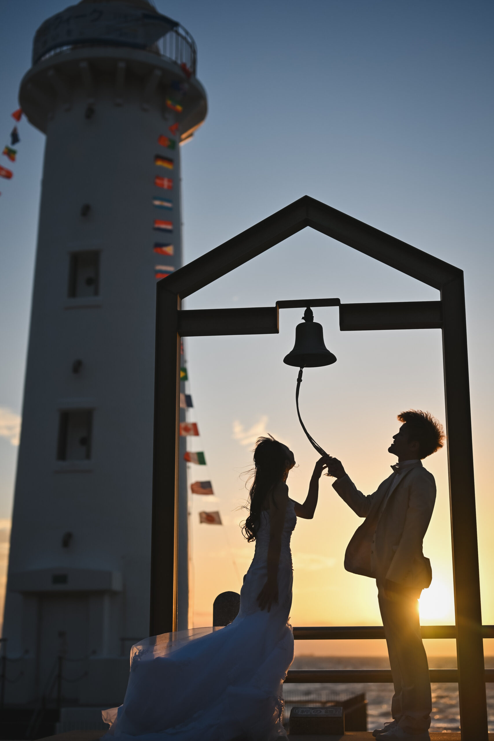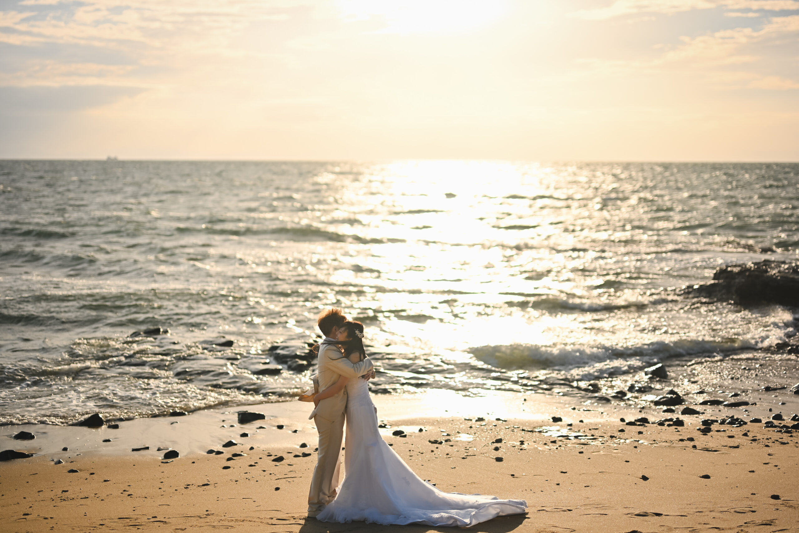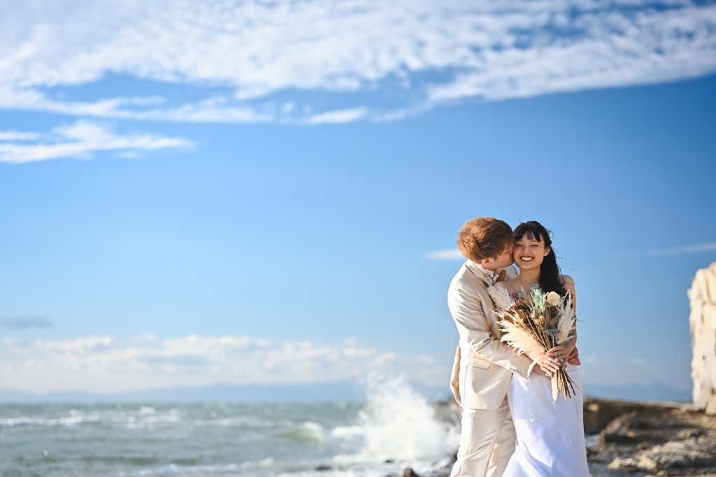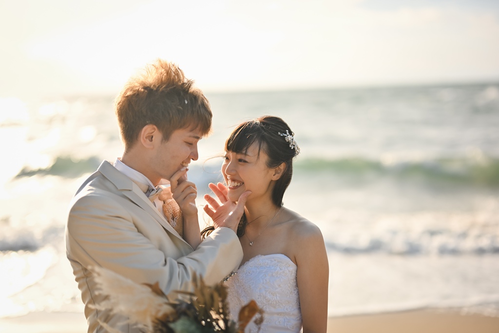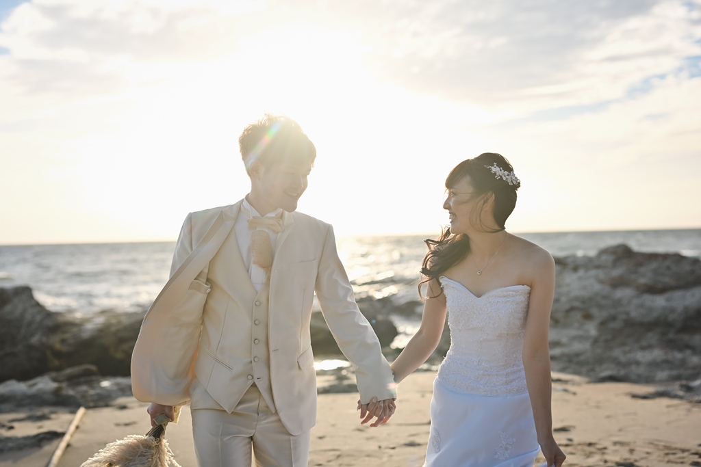 おふたりの自然体な笑顔がとても印象的で、スタッフ一同とても癒されながら撮影させていただきました。特にサンセット撮影では、やわらかな夕焼けに包まれた幻想的な雰囲気の中、内海ならではの美しい景色を残すことができたのではないかと思います。