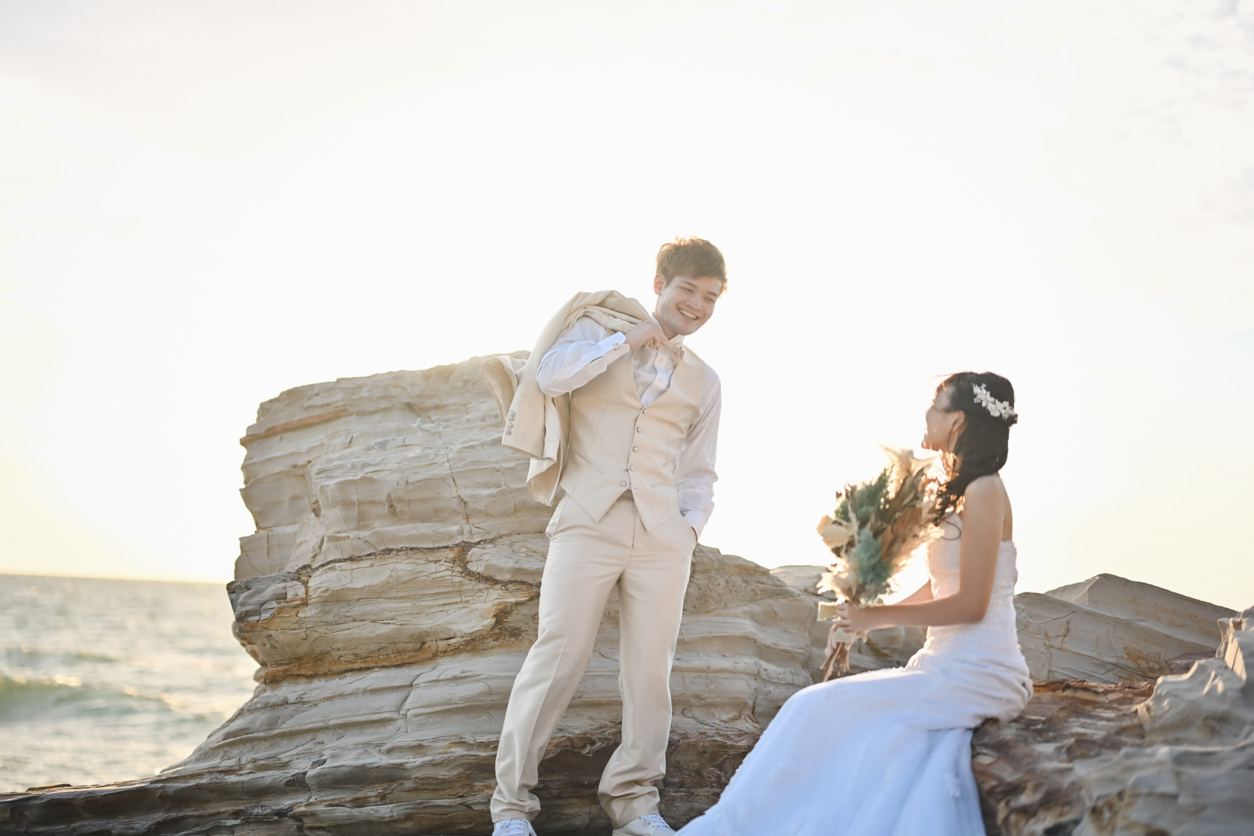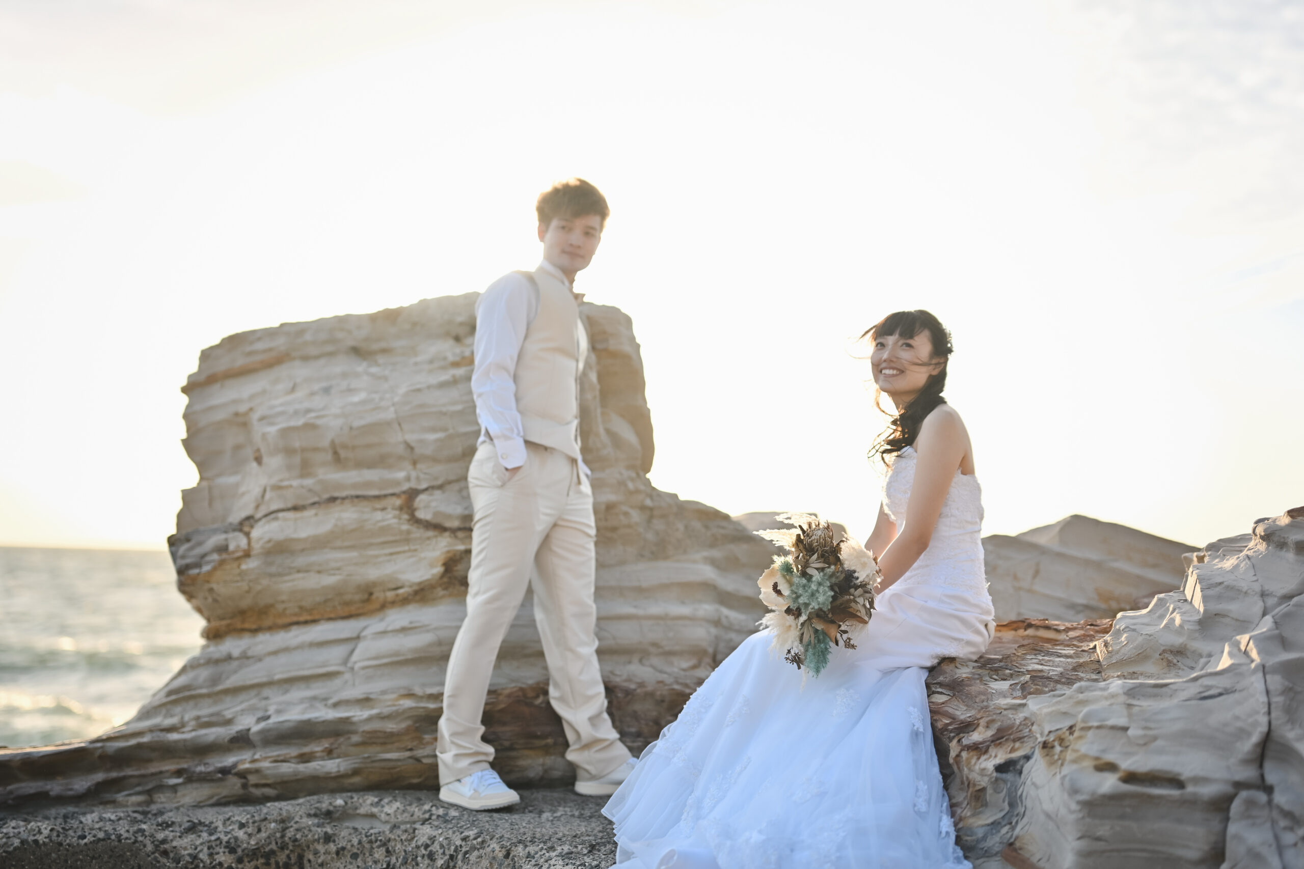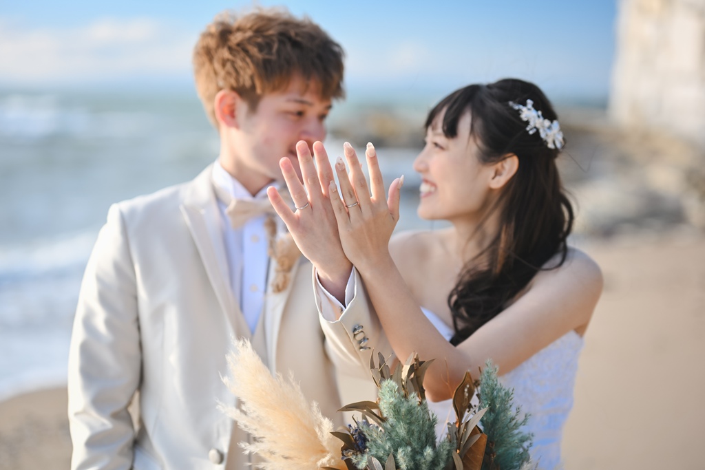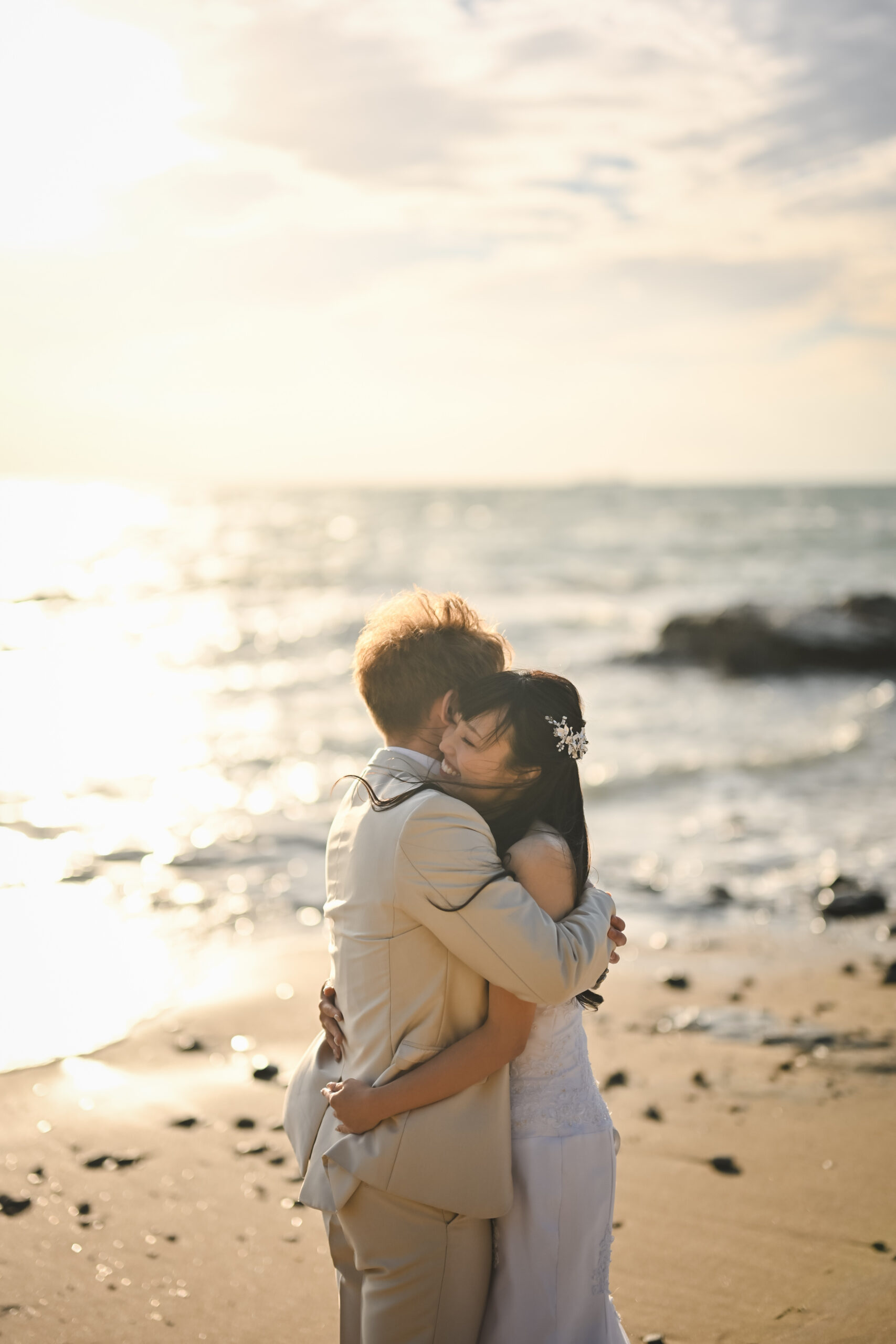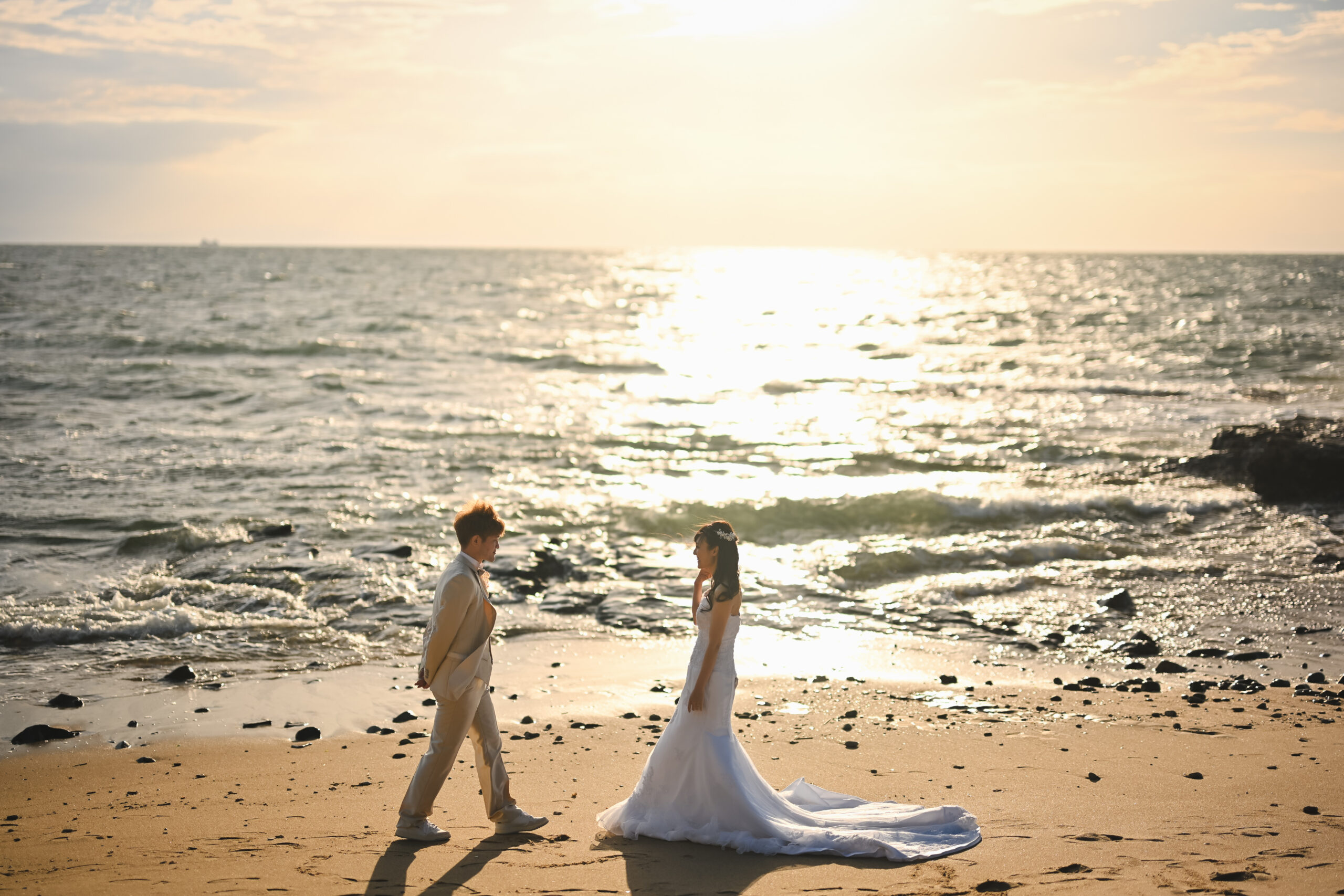 おふたりの自然体な笑顔がとても印象的で、スタッフ一同とても癒されながら撮影させていただきました。特にサンセット撮影では、やわらかな夕焼けに包まれた幻想的な雰囲気の中、内海ならではの美しい景色を残すことができたのではないかと思います。