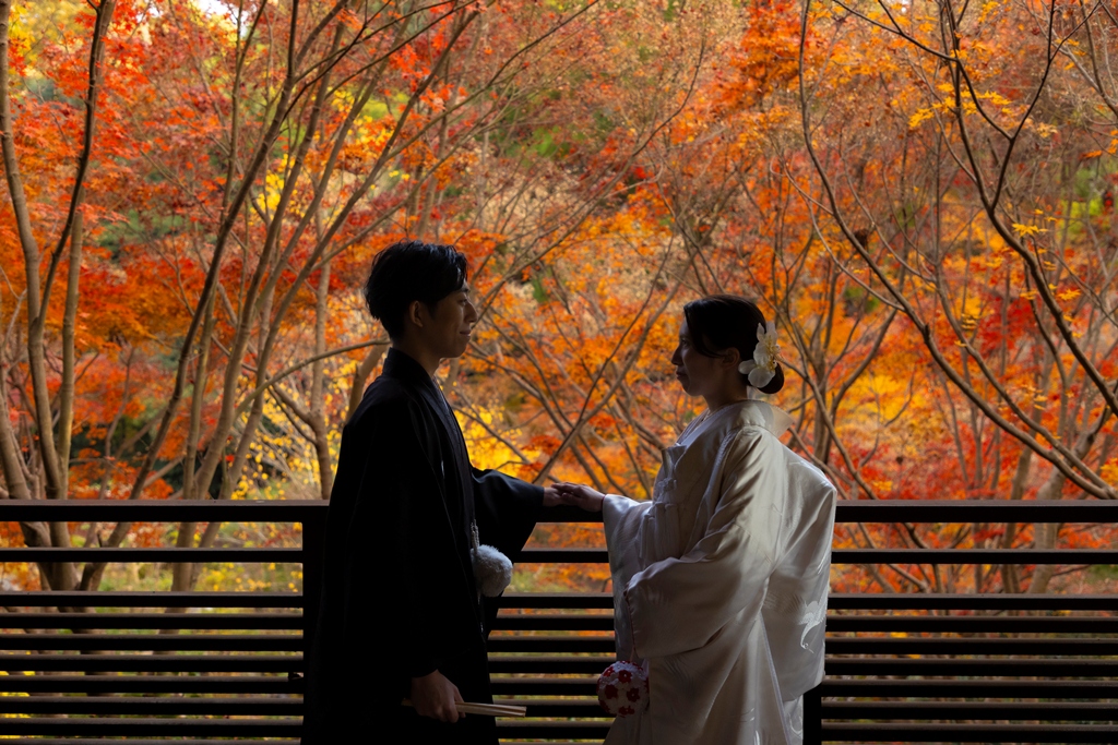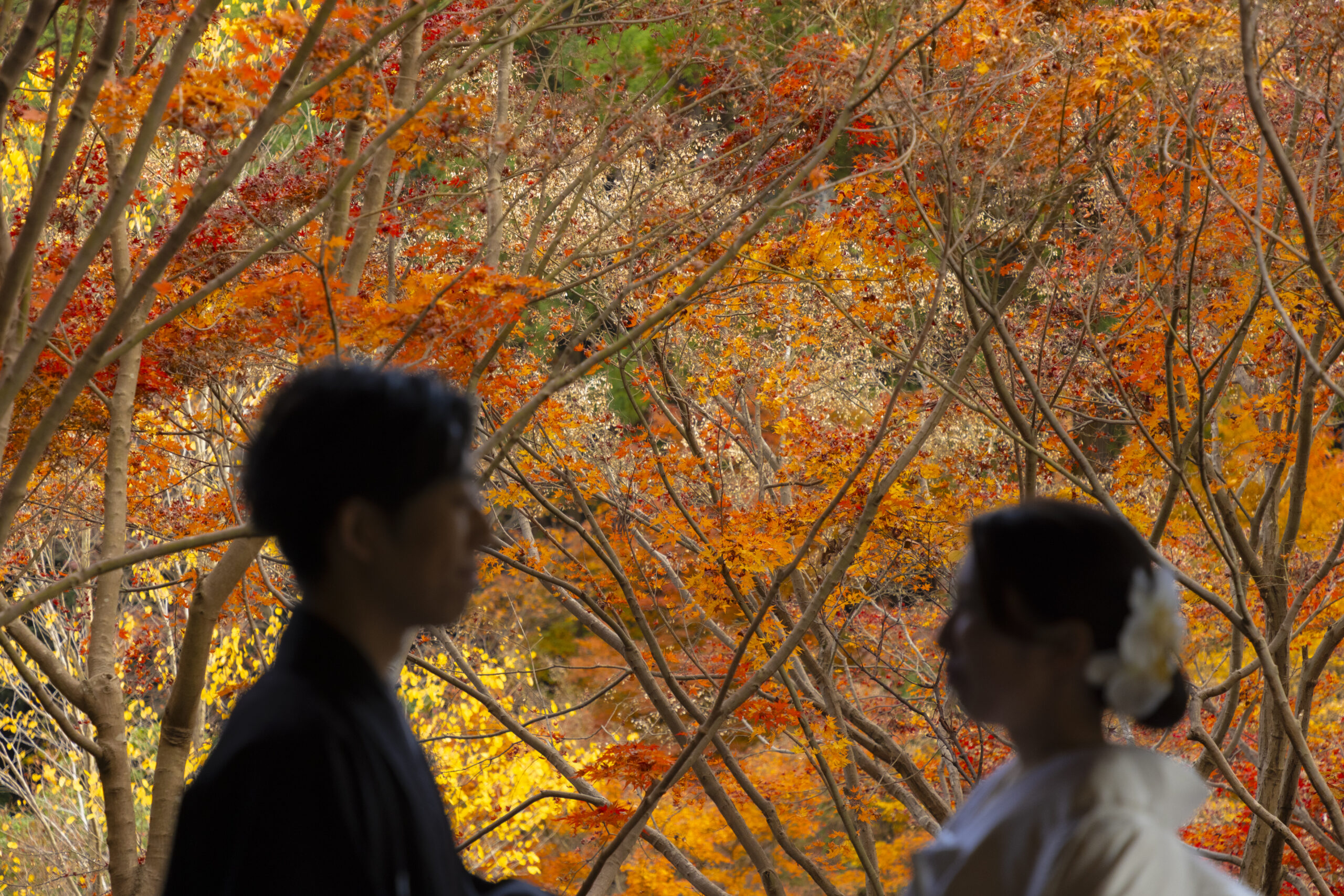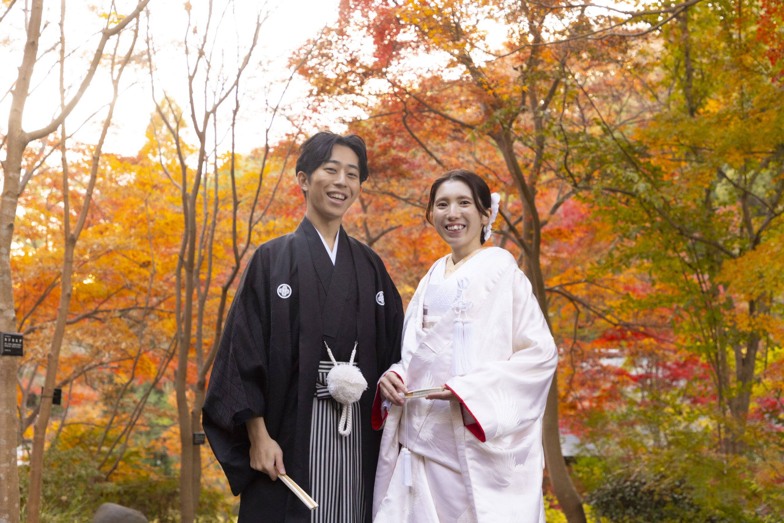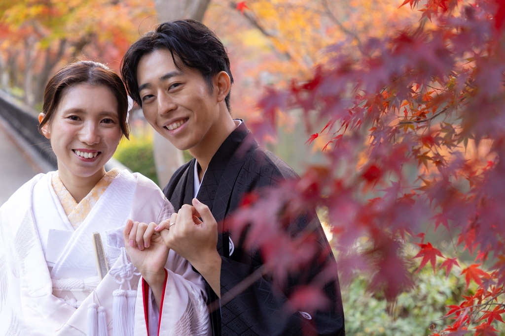 紅葉の色づきや和装との相性が本当に美しく、季節感のある特別な写真を残せると感じて選びました。- Point ザ・スカイウェディングで撮影されたご感想や、良かった点を教えてください。