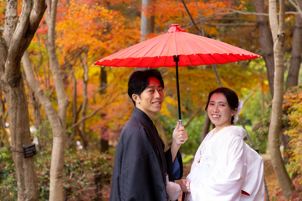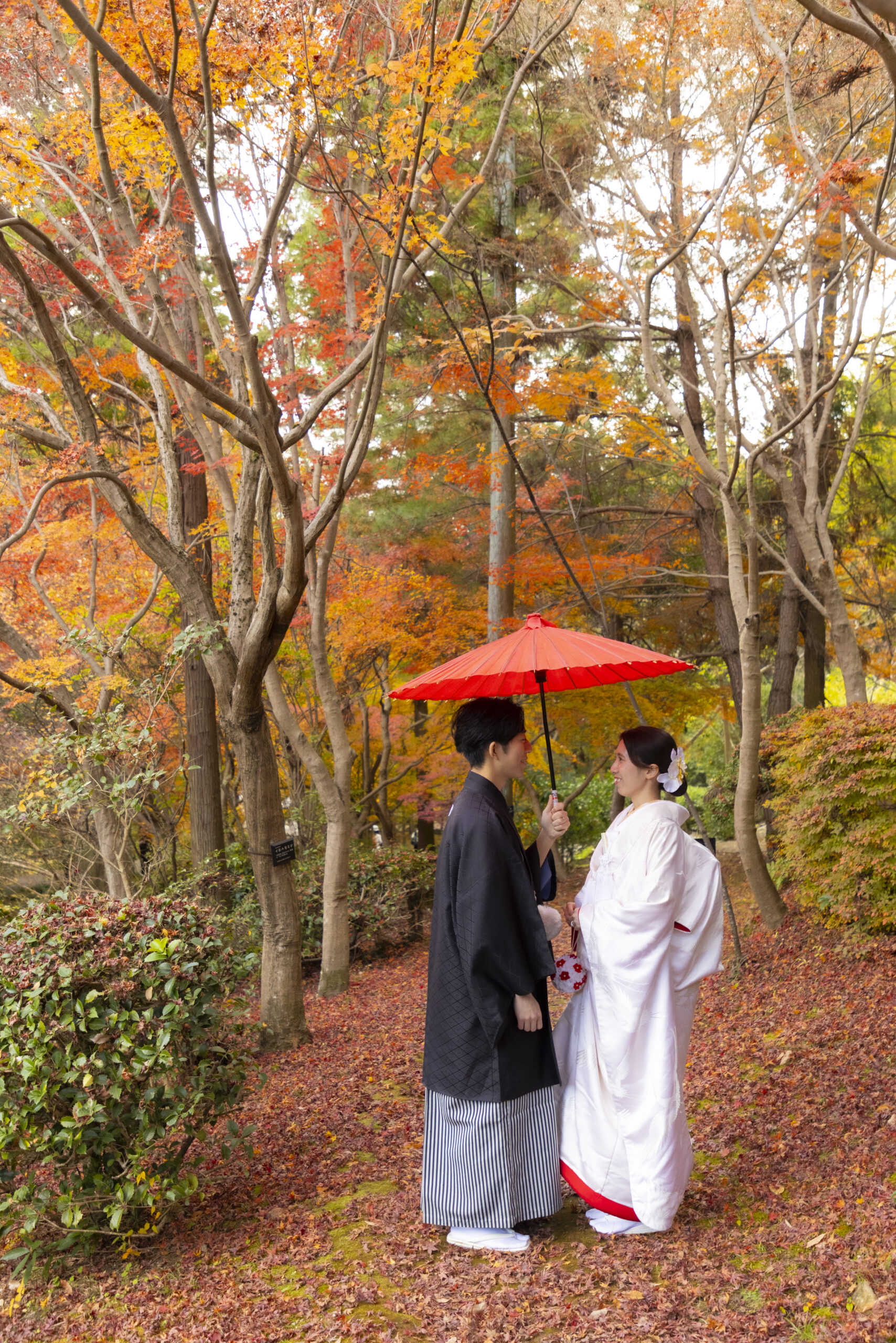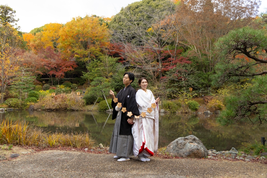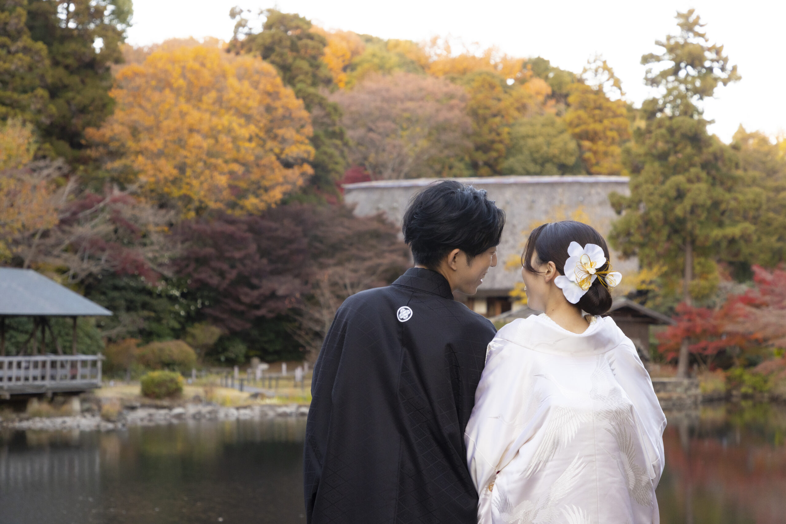 紅葉の色づきや和装との相性が本当に美しく、季節感のある特別な写真を残せると感じて選びました。- Point ザ・スカイウェディングで撮影されたご感想や、良かった点を教えてください。