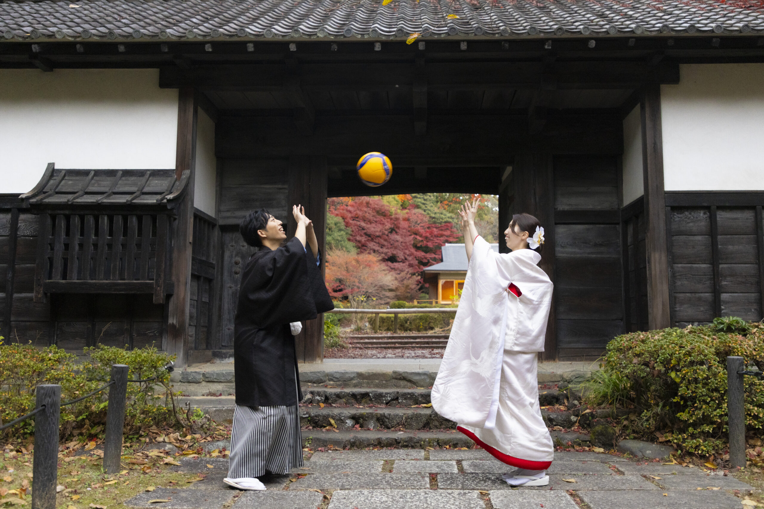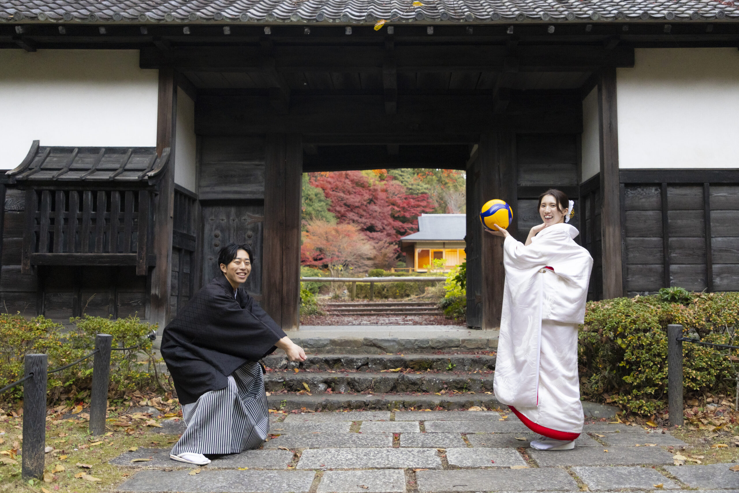 和装でのバレーボールも新鮮で記憶に残りやすいお写真ですね✨お2人のなかでこの撮影が素敵な想い出になっていたら嬉しいです。