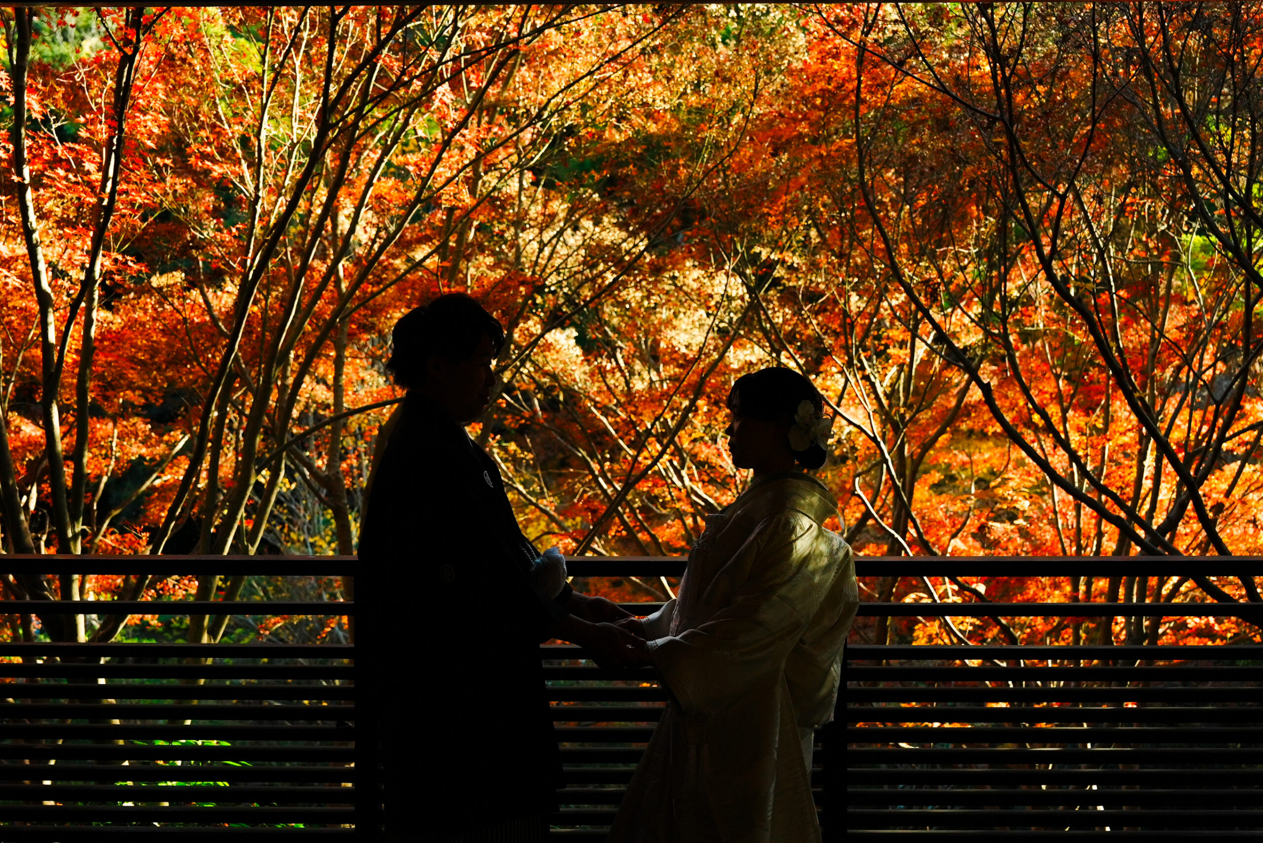 紅葉に包まれた、穏やかなひとときを写真に残して