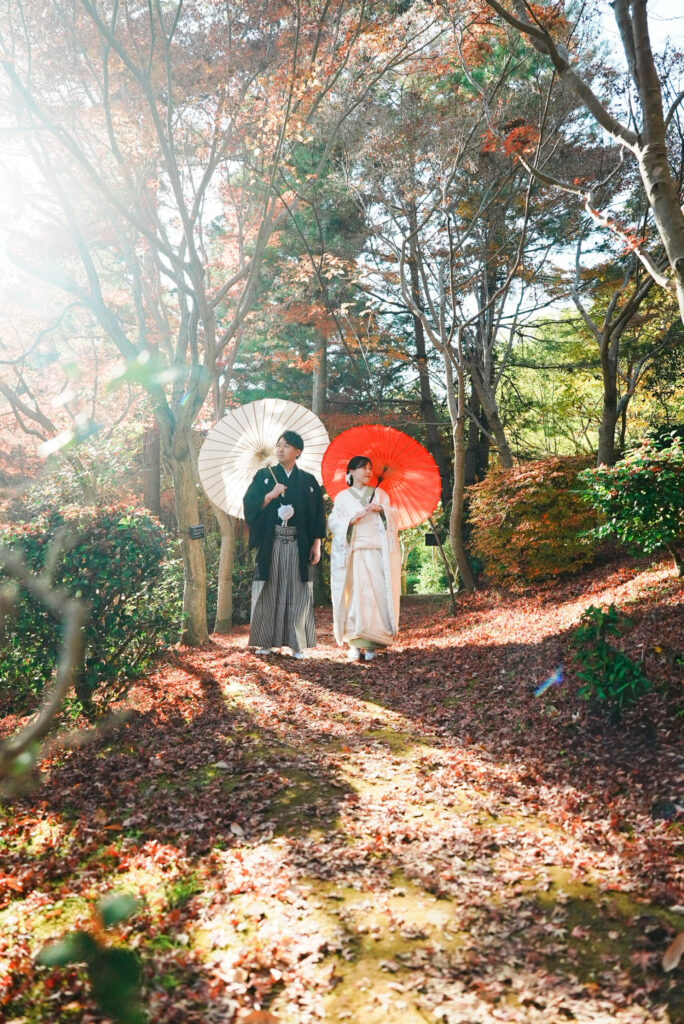 東山動植物園の自然に包まれたロケーションの中で、おふたりの笑顔がとても印象的な撮影となりました。おふたりが並んだ時の自然な笑顔が本当に素敵で、見ているこちらまで温かい気持ちになりました。