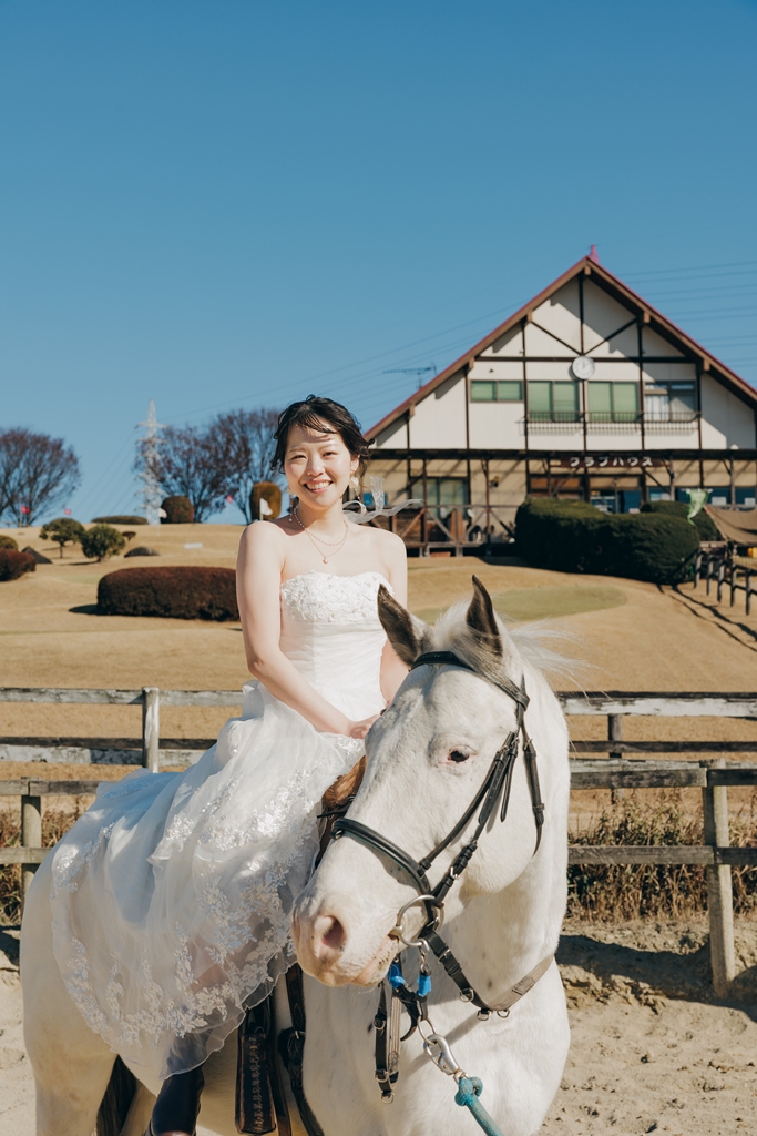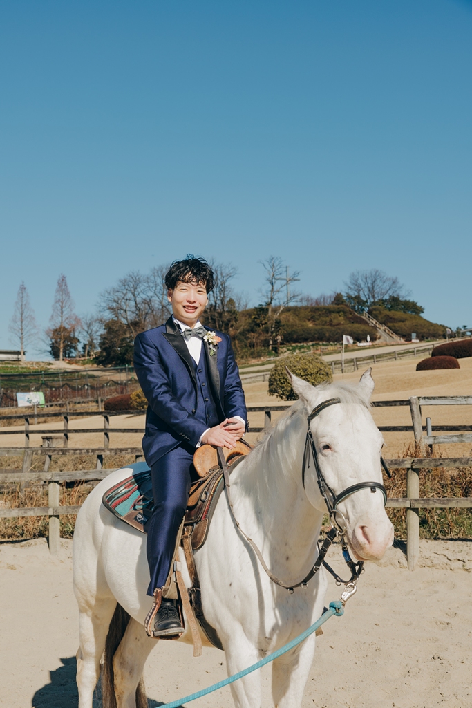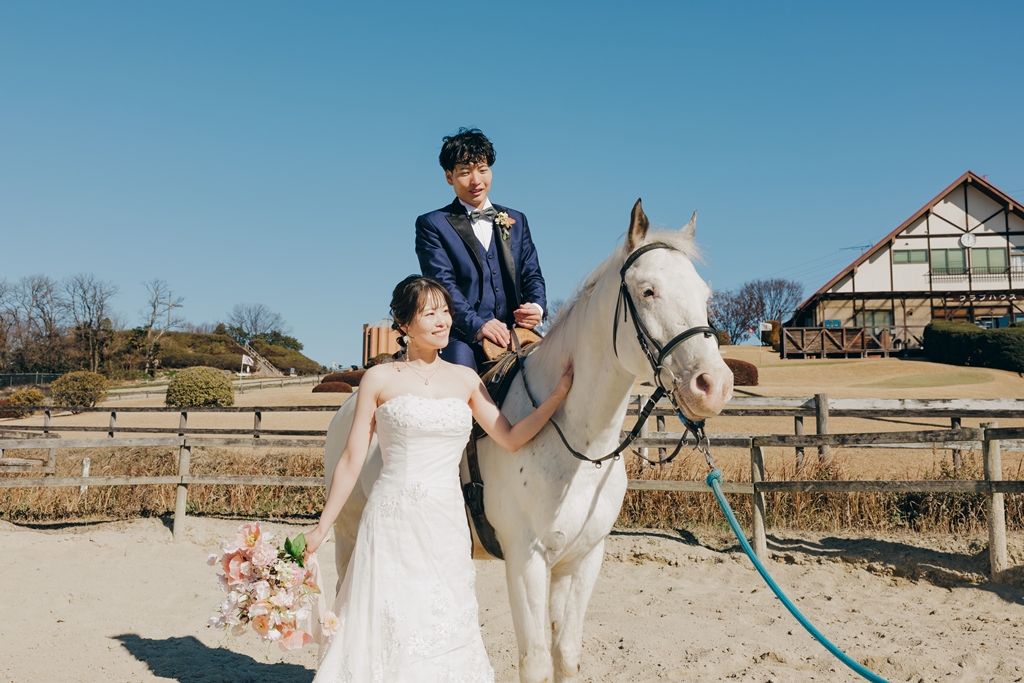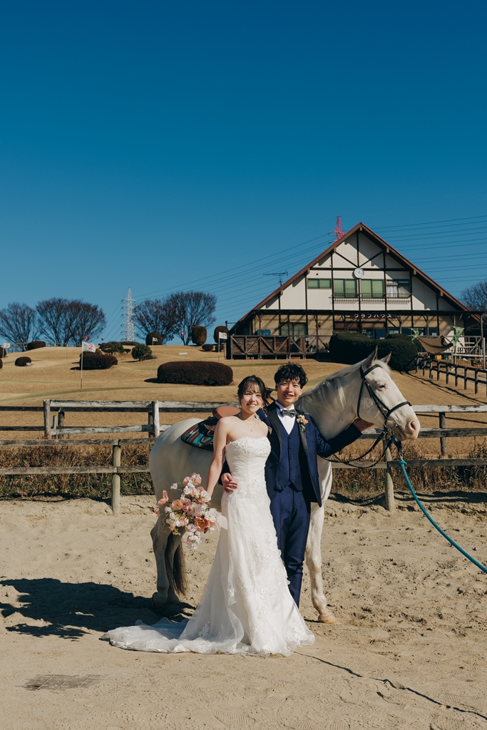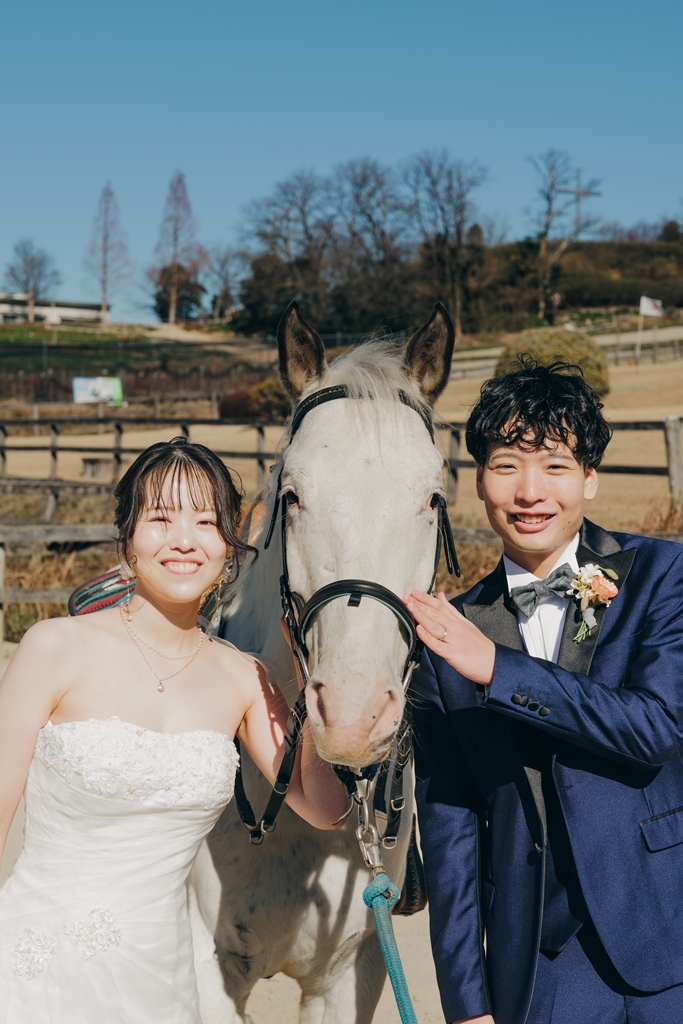 動物がお好きだと伺っていたので、白馬と撮影いただけて良かったです♪お写真や撮影日が、お2人にとって素敵な思い出になっていたら幸いです。