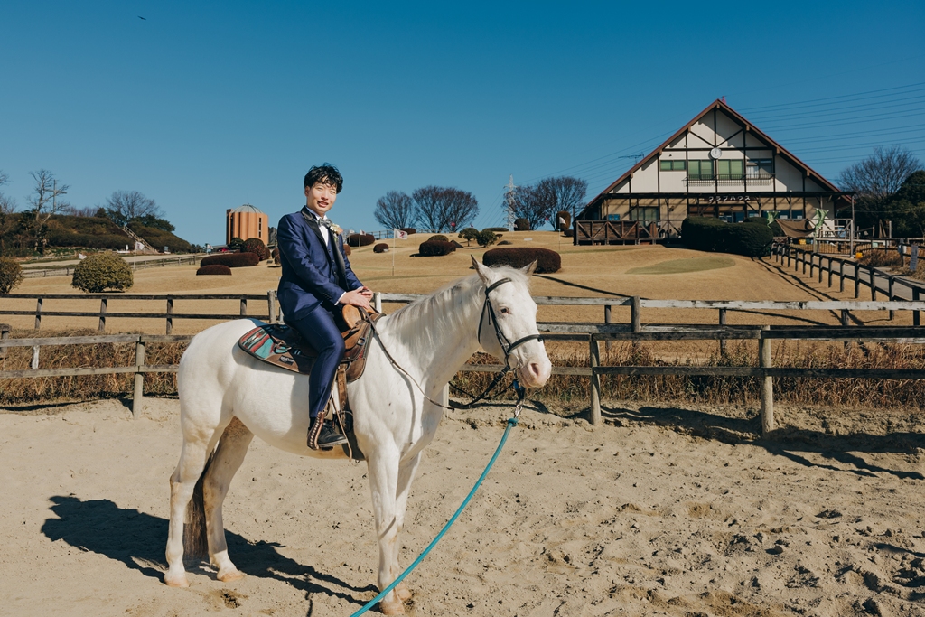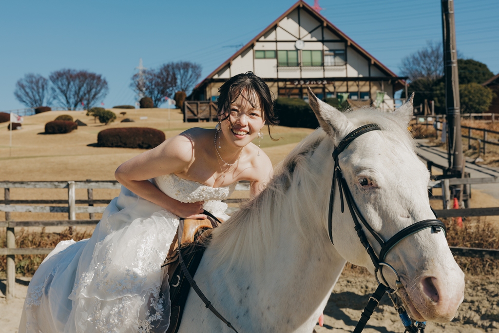 夫婦共々動物が好きで、撮影する年がちょうど午年になった年だったため、馬と撮影できるところを探していました。