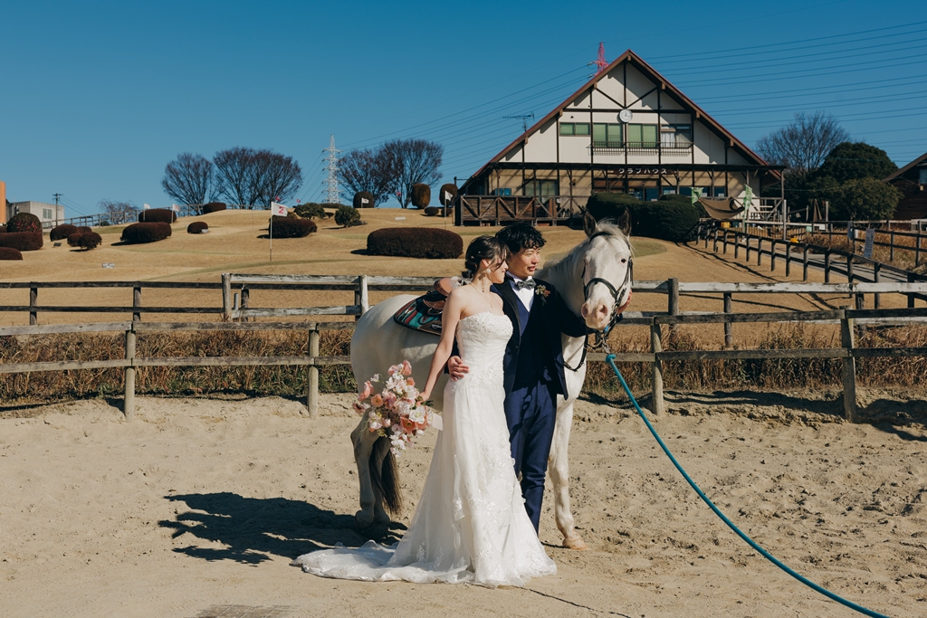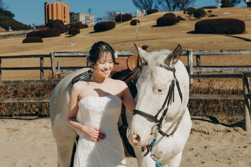 白馬と撮影🐎愛知牧場でのフォトウェディング♡