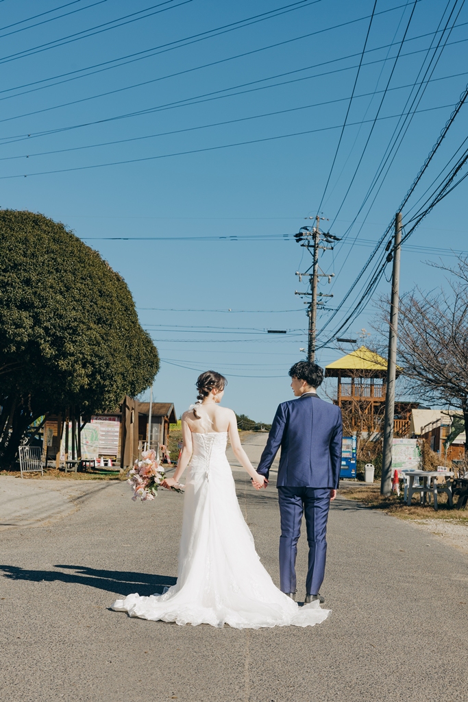 数あるスタジオの中から、当店をお選びいただきありがとうございました!とっても天気も良く、お2人の洋装姿が青空に映えていますね✨