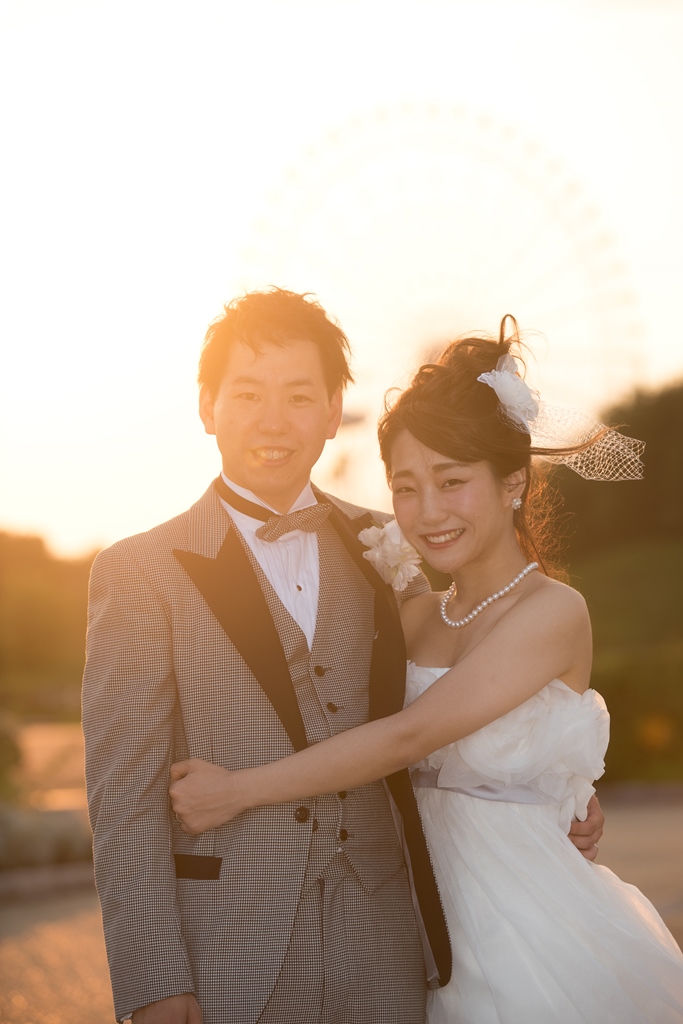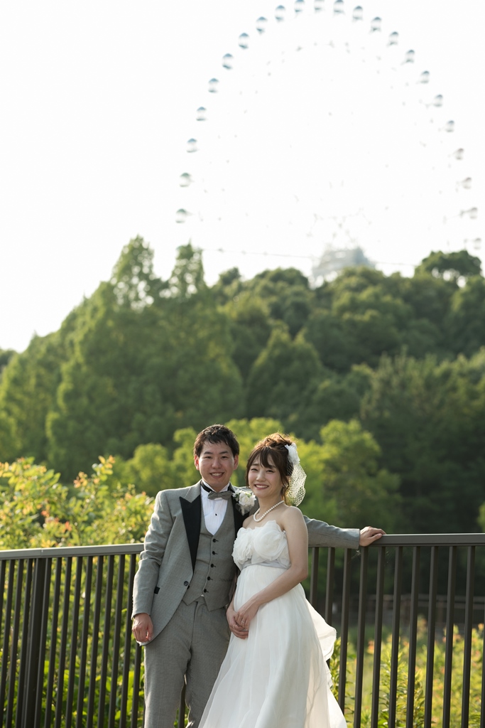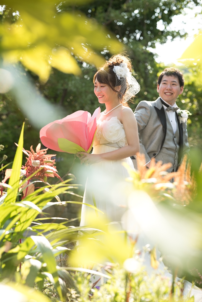 観覧車や季節のお花に囲まれてのお写真や、お2人の手作り撮影アイテムも